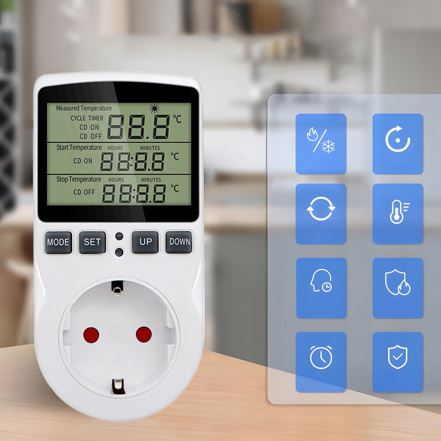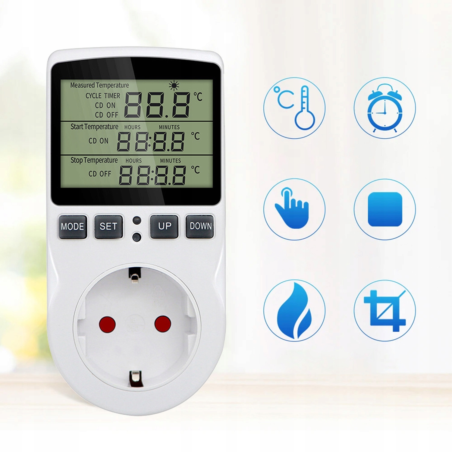 【Якість і легке керування】РК-дисплей легко читати. Просто підключіть навантаження до розетки термостата та встановіть значення температури, і пристрій працюватиме без необхідності підключати дроти, з точністю ± 1°C.