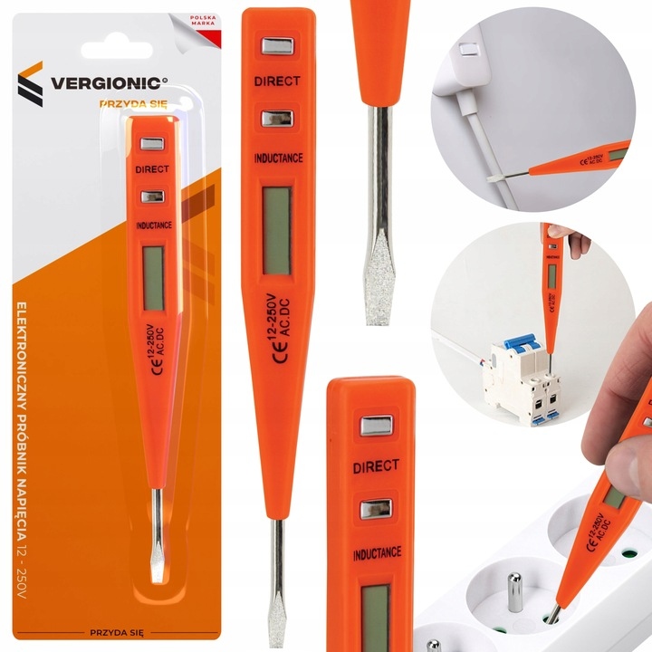 Індукційний метод дозволяє визначити напругу при подачі на ізольований провід - тоді на дисплеї з'явиться символ блискавки. Тестер дозволяє вимірювати змінний і постійний струм напругою від 12 В до 250 В.