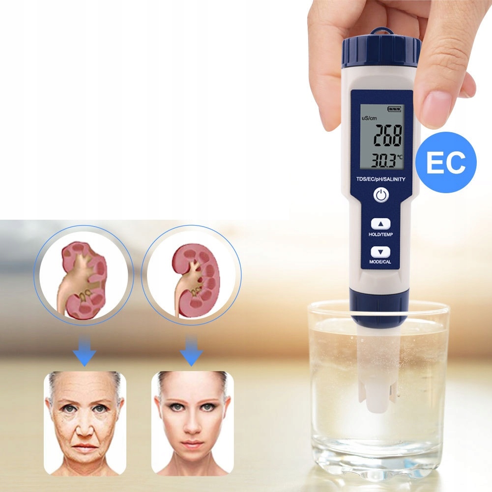 ЕЛЕКТРОННИЙ ТЕСТЕР ВОДИ 5 В 1 ДЛЯ ВИПРОМІНЮВАННЯ PH, СОЛОНОСТІ, ТЕМПЕРАТУРИ, TDS ТА EC