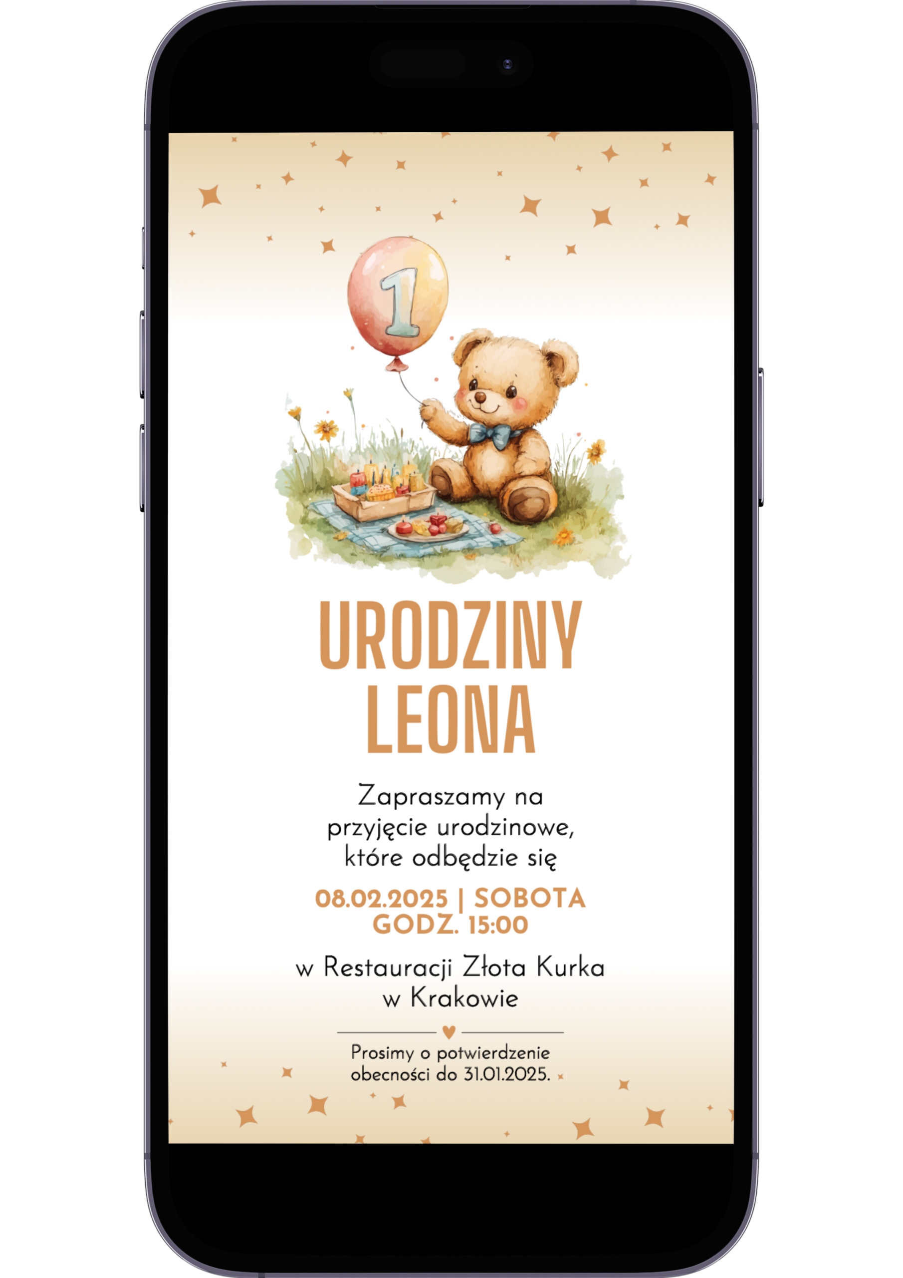 ⏱ Експрес -реалізація : Персоналізоване цифрове запрошення Ви отримаєте максимум 24 протягом 24 годин.