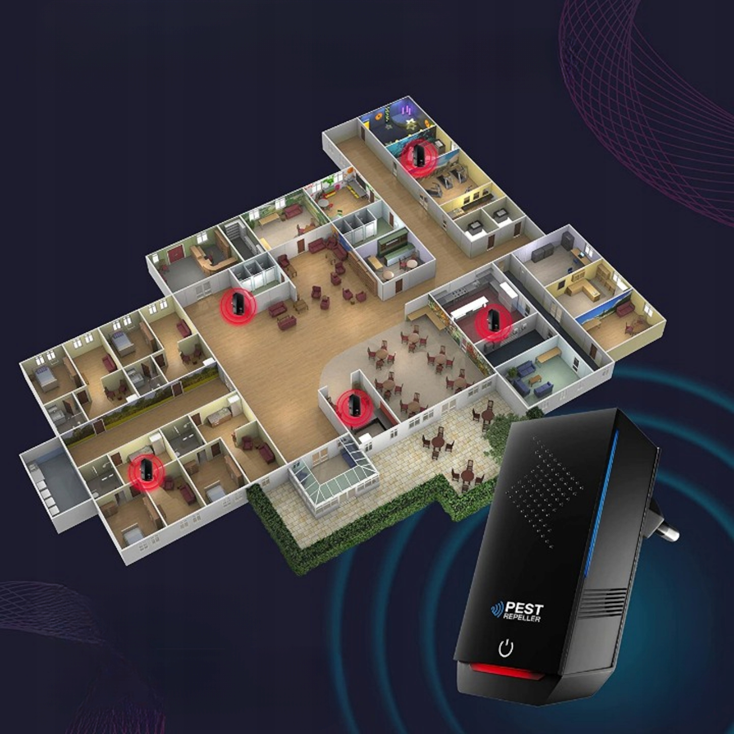 Цей ультразвуковий відлякувач працює в широкому діапазоні, ефективно захищаючи площу до 140 м² (280 м² для двох пристроїв). Він безпечний для людей і домашніх тварин і в той же час ефективно відлякує низку шкідників, таких як миші, щури, комарі, мухи, жуки, таргани, мурахи, клопи тощо. ідеальне рішення для людей, які хочуть ефективно захистити свій будинок і в той же час забезпечити безпеку своїх близьких і домашніх тварин.