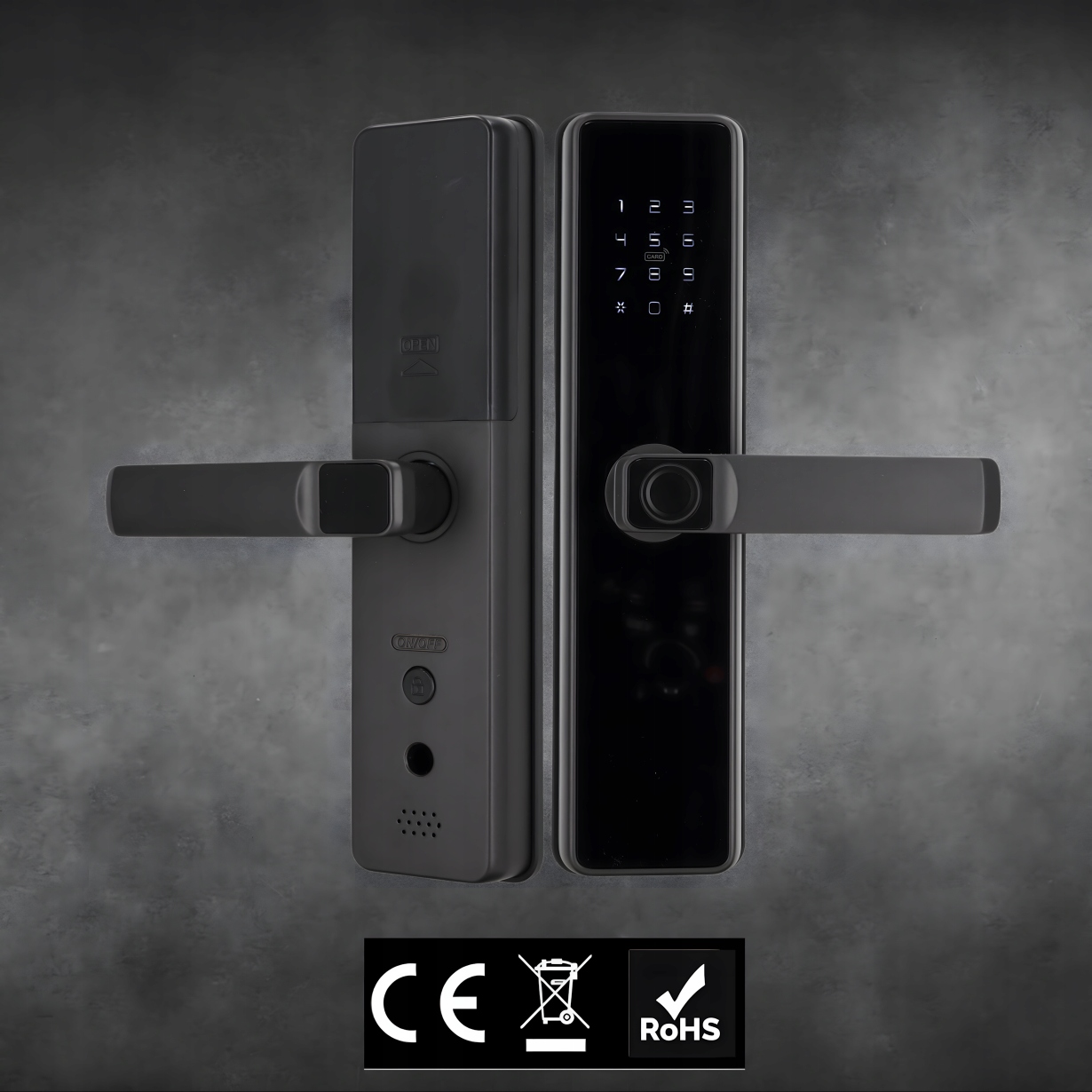ЕЛЕКТРОННИЙ ЗАМОК, ДВЕРНА РУЧКА ЧОРНА З КОДОМ, КОД, ВІДБИТОК ПАЛЬЦЯ TTLOCK