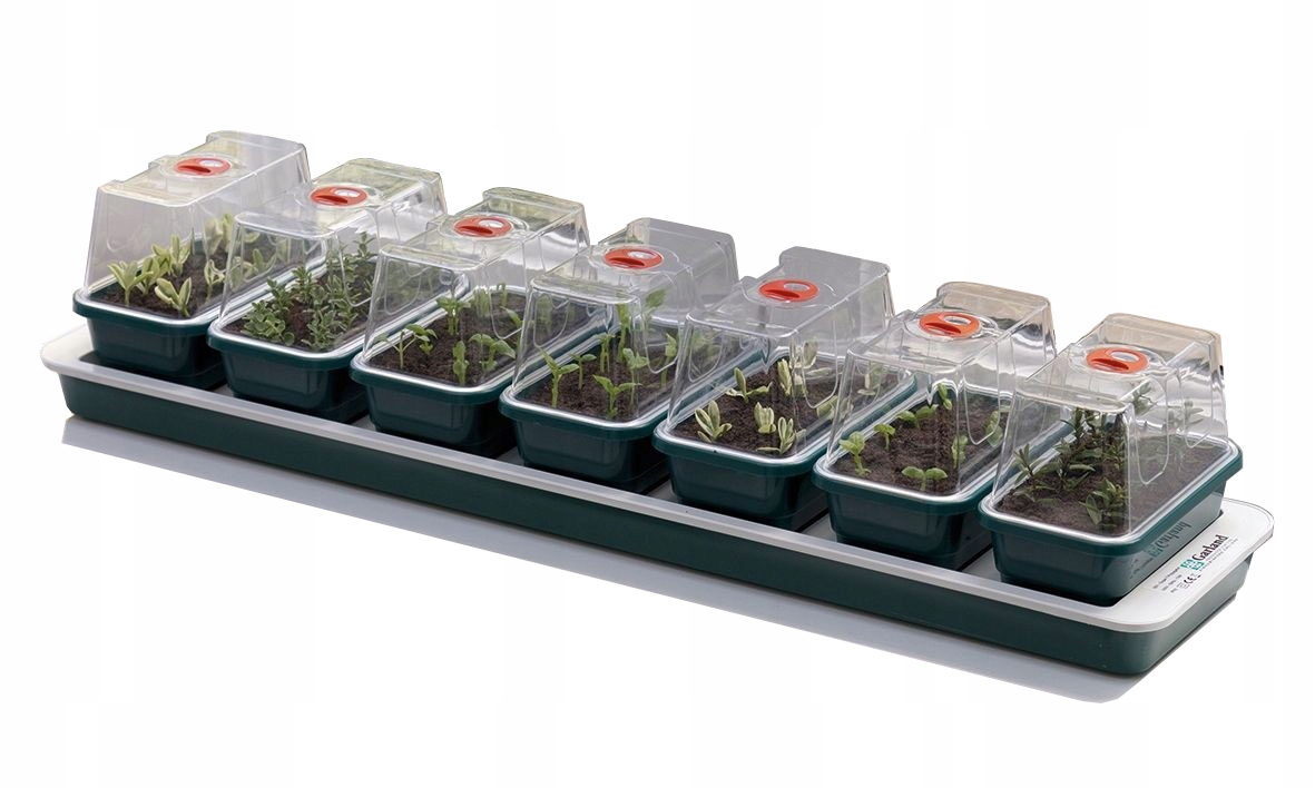 Набір Super 7 містить 7 контейнерів з кришками з міцного, але гнучкого пластику, тому ви можете підготувати розсаду багатьох сортів одночасно. Кришки виготовлені з кристалічного пластику, завдяки чому всередину потрапляє багато світла. Відповідна висота кришки дозволяє рослинам вільно рости, а вентиляційний отвір у верхній частині забезпечує потік повітря. >