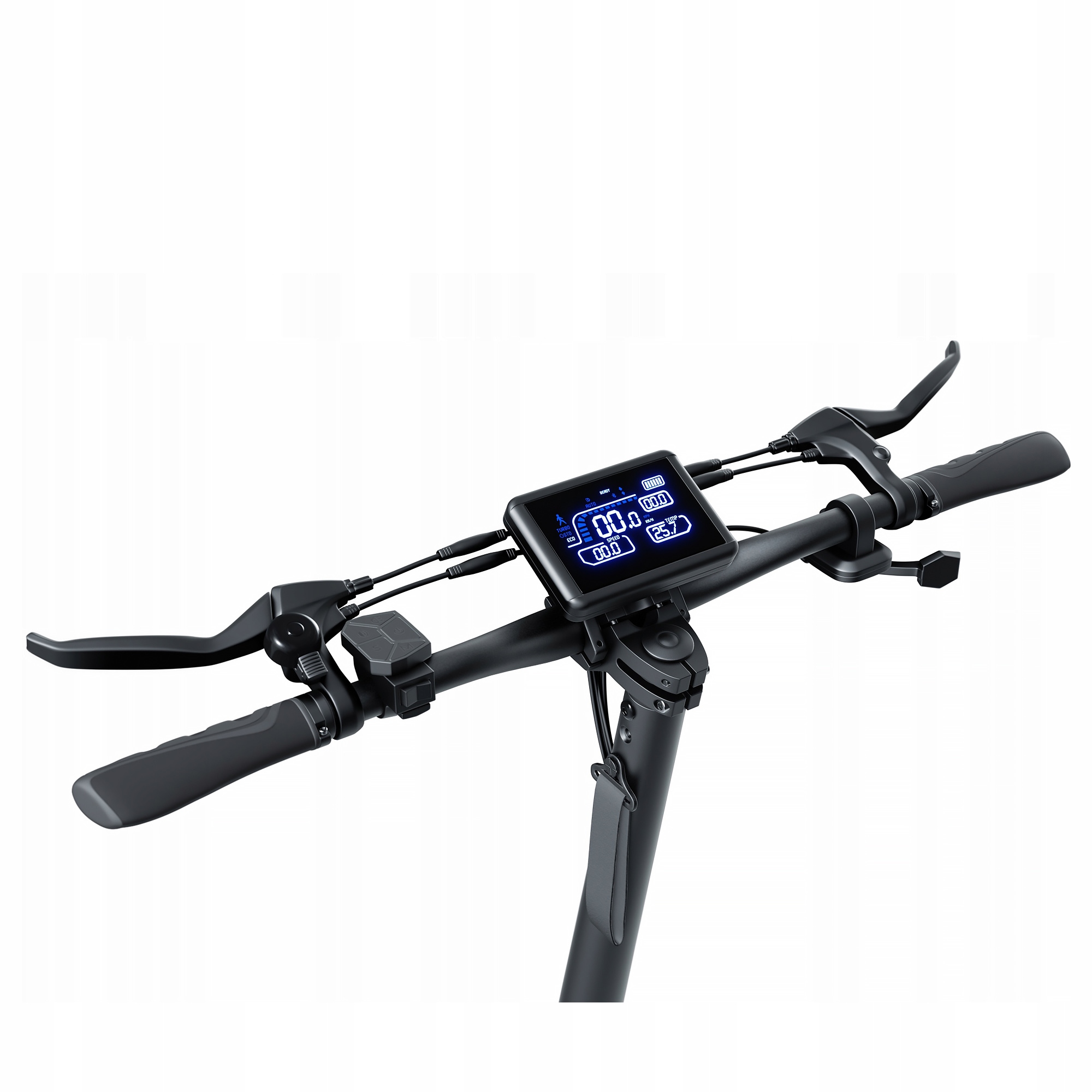 Найважливіше - на кермі є яскравий і дуже прозорий дисплей. Тут ви можете контролювати поточну швидкість і рівень заряду скутера. За допомогою великого дисплея ви також можете перевірити температуру контролера, контроль цього параметра дозволить вам уникнути перегріву автомобіля під час більш агресивної їзди!