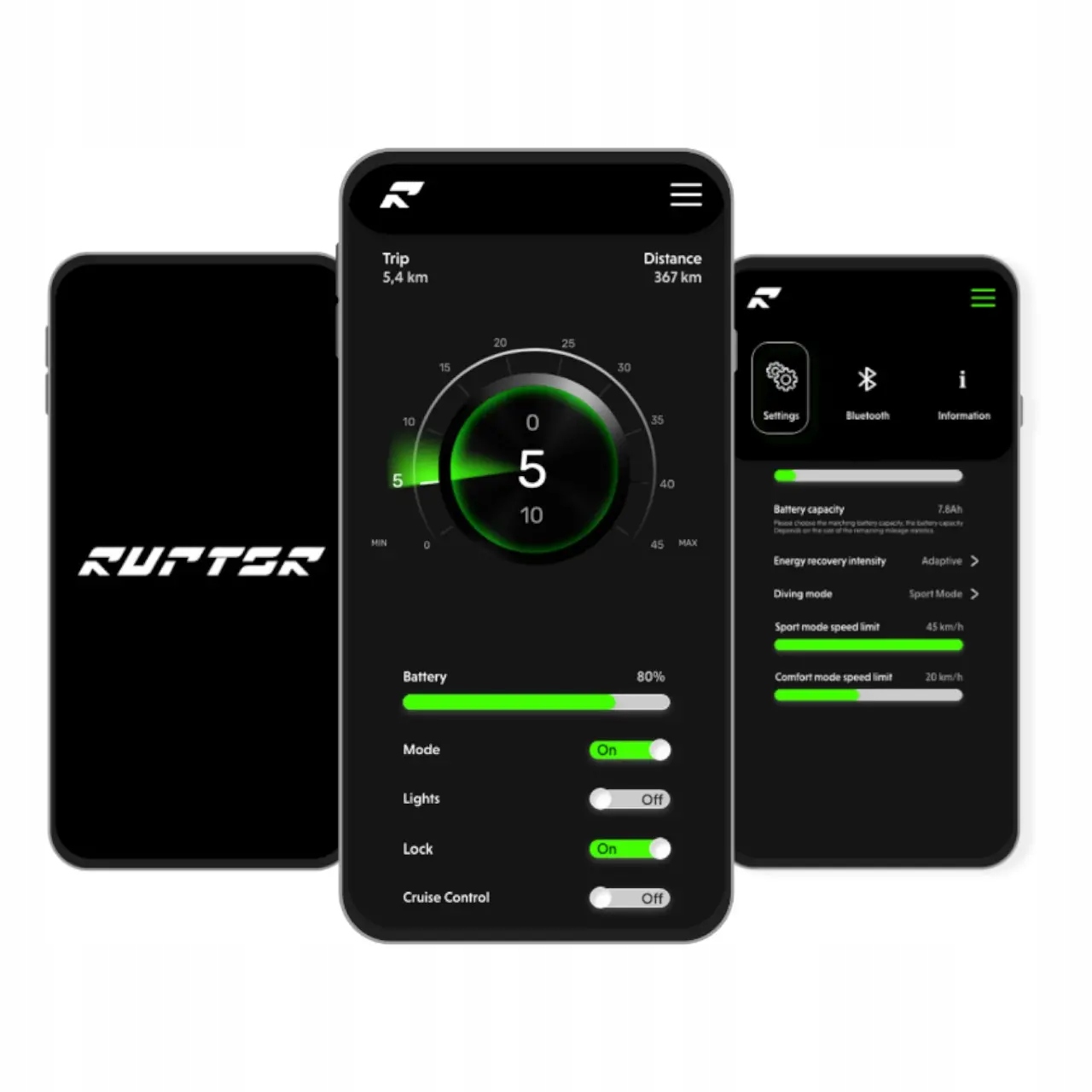 Його вишуканий, хижий дизайн подбає про те, щоб ніхто не пройшов повз вас і вашого звіра байдужим! Електричний скутер Ruptor R3 доступний у трьох варіантах: чорному, зеленому та мідному.