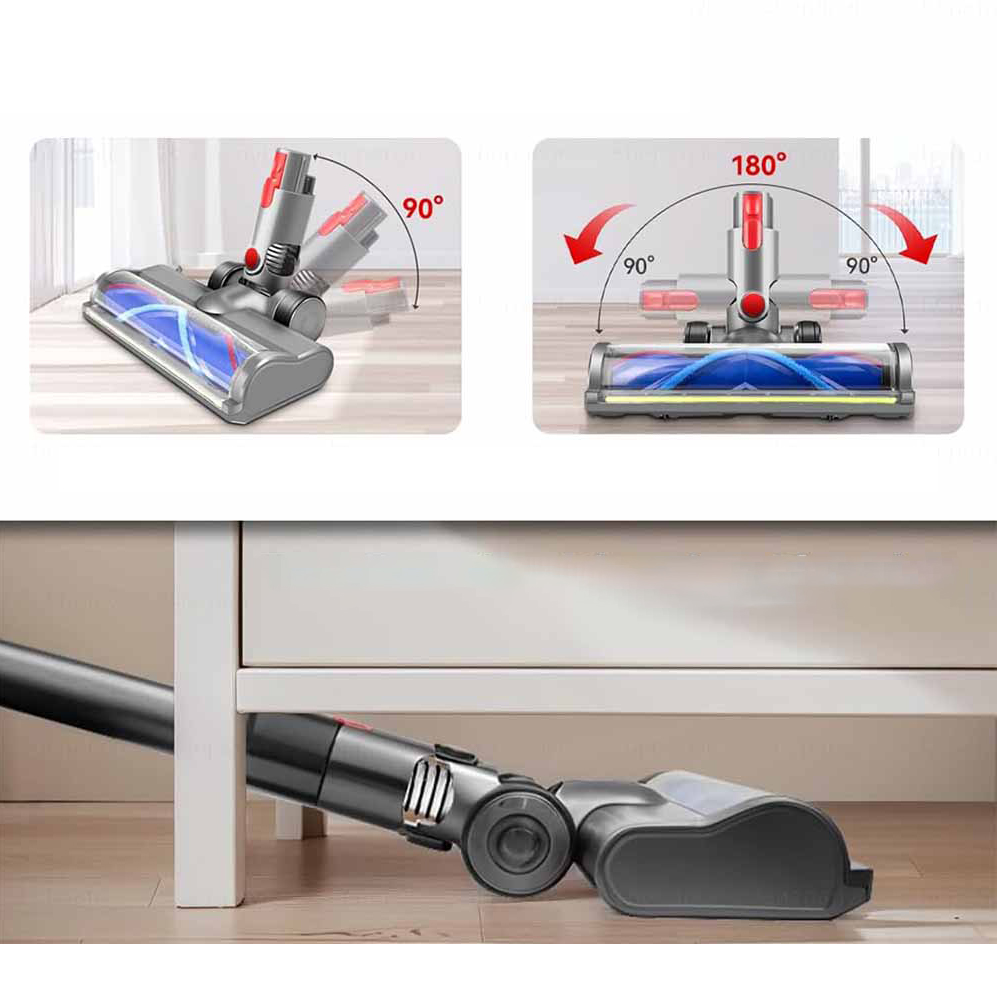 💫Можна обертатися на 90° по вертикалі та на 180° по горизонталі, щоб легко дістатися до країв і вузьких місць. Крім того, два додаткових колеса роблять пилосос надзвичайно плавним і легким у русі.