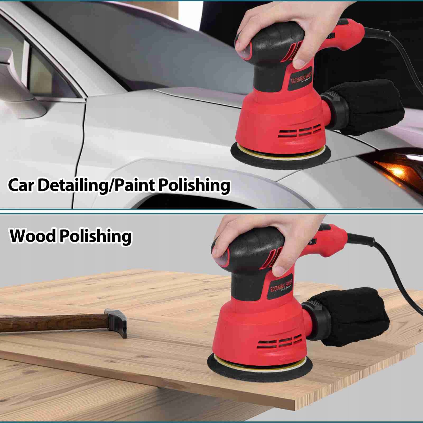 2. 【Ефективне збирання пилу】 Ексцентрикова шліфувальна машина постачається з мішком для пилу, який не зникає під час роботи. Гарне збирання пилу завдяки гумовому ущільненню на отворі для пилу, гарному потоку повітря та герметичному картриджу для пилу.