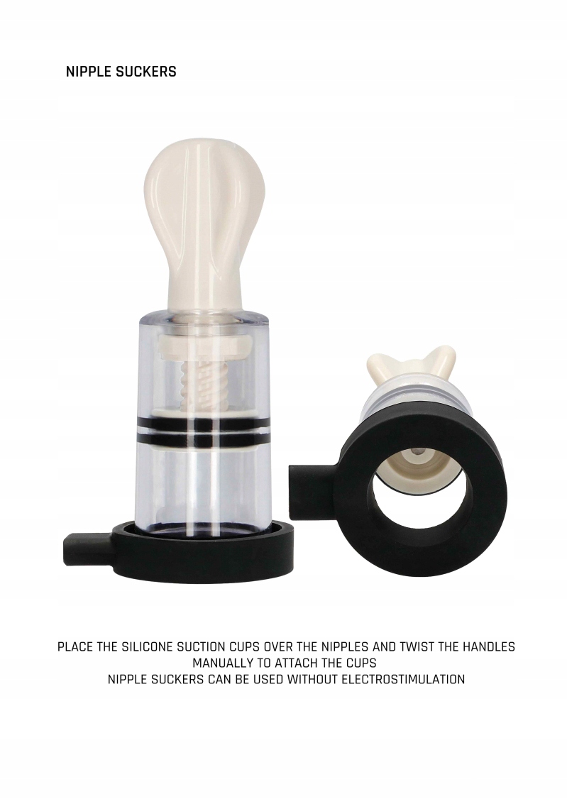 4 Просто покладіть силіконові присосні чашки на соски і вручну поверніть ручки, щоб прикріпити їх. Підключіть дроти, що ведуть до прикріпленого пульта дистанційного керування до ручок. Завдяки цьому ви можете змінити інтенсивність стимуляції з ніжного лоскотання до потужного пульсуючого! Електросніжні стимулятори Twisters виготовлені з високої якості ABS.