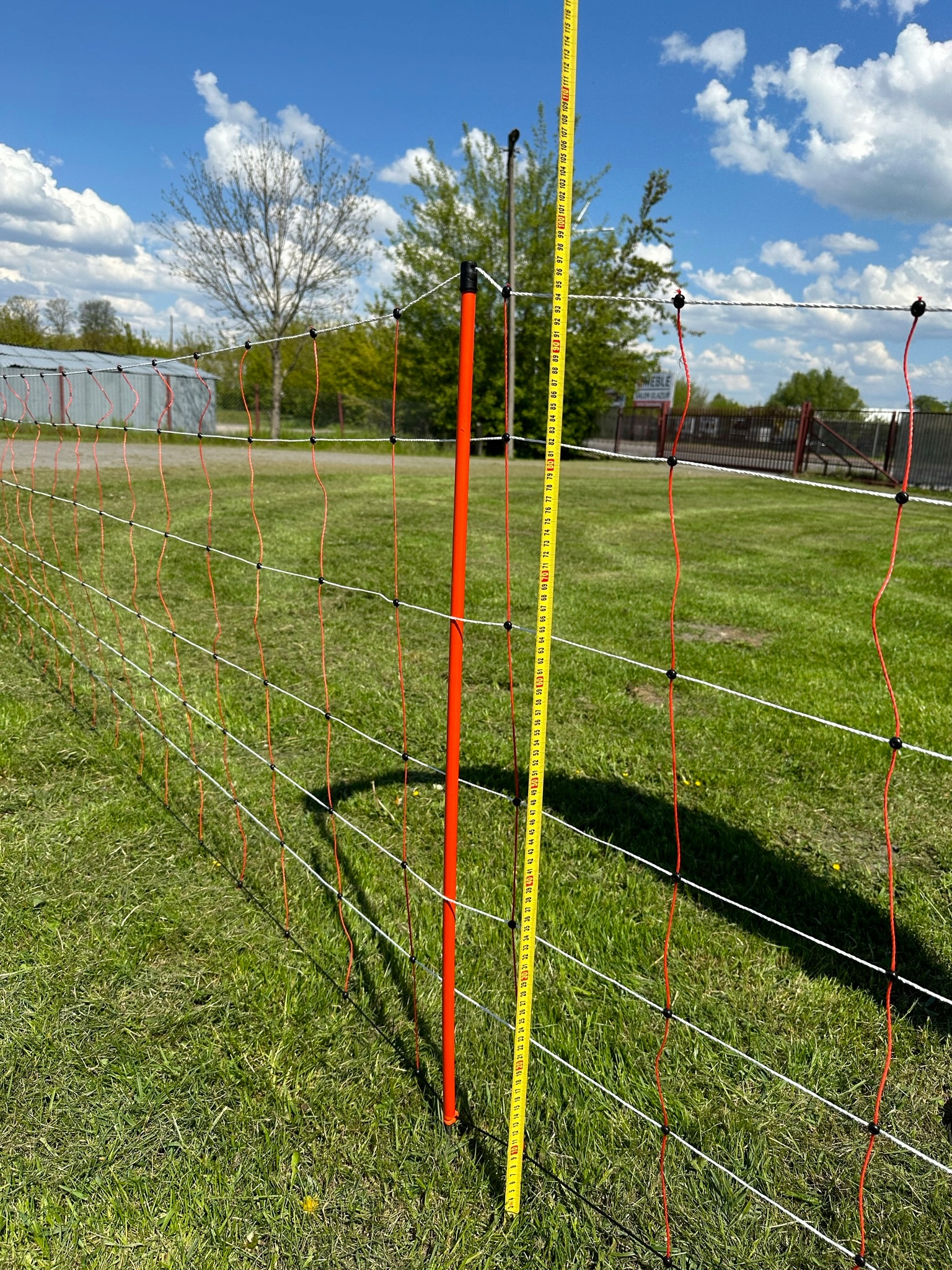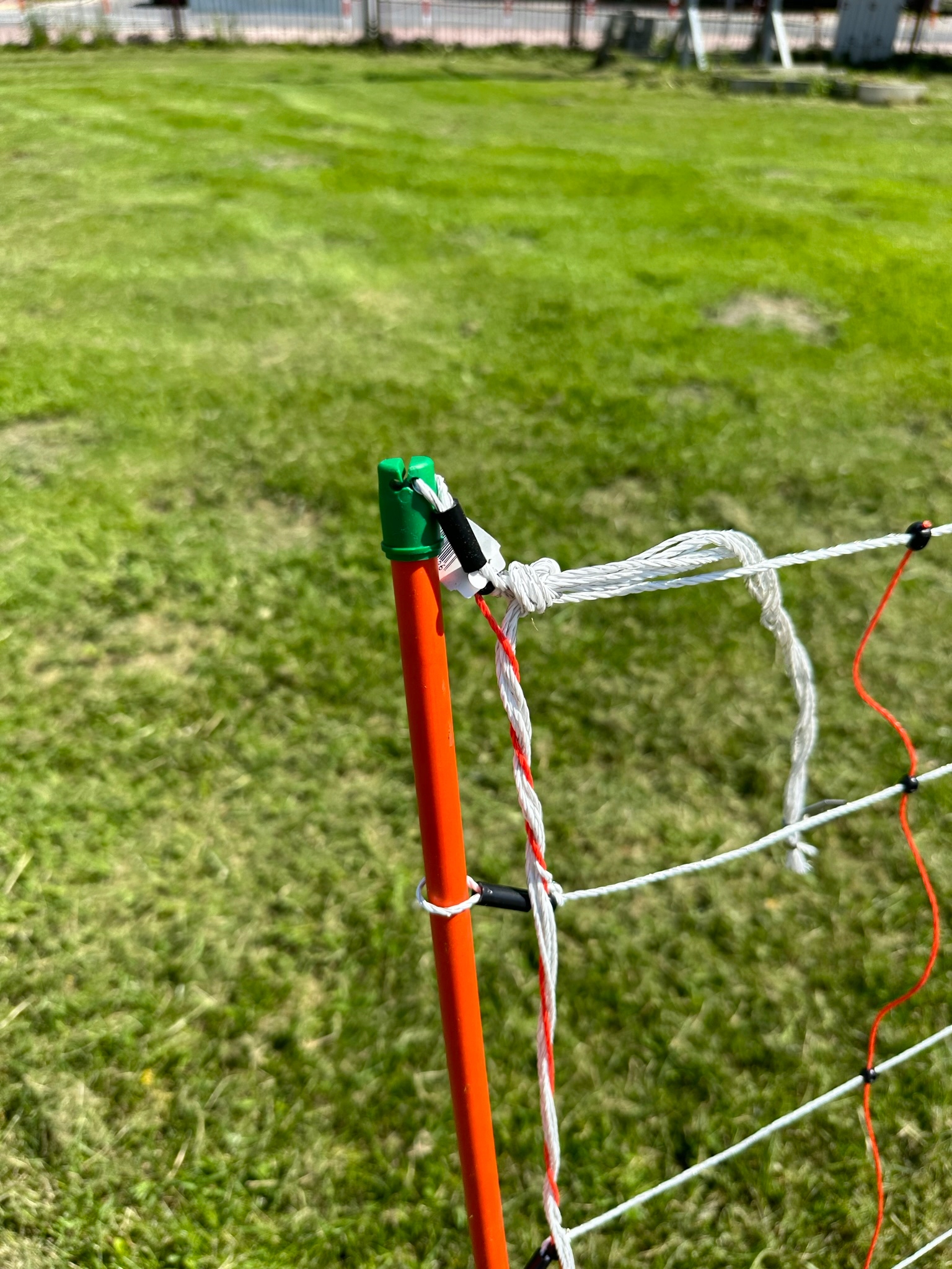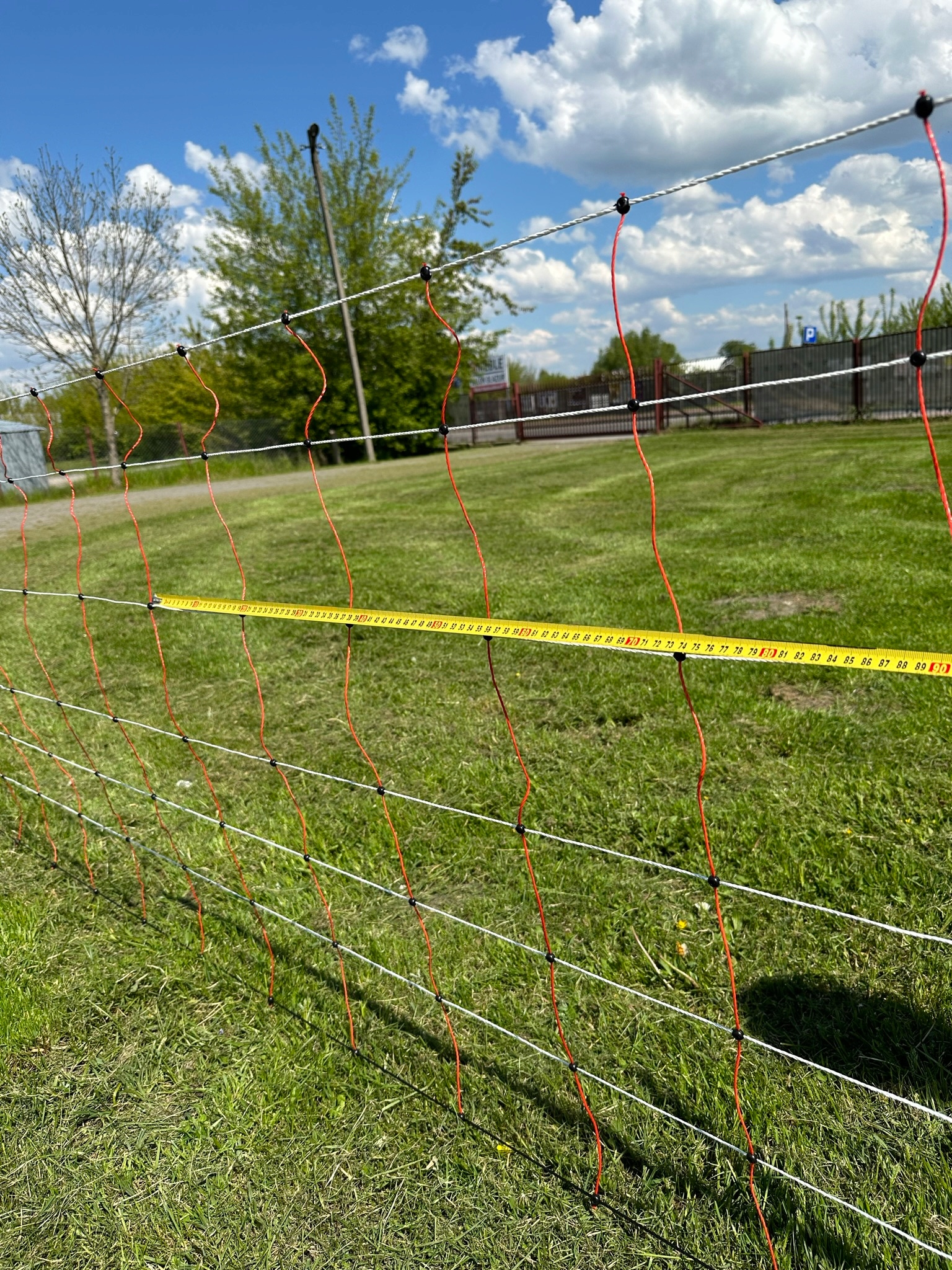 Електрична сітка для овець для захисту стада від хижаків і втечі. Дуже легко налаштувати, це займе лише хвилину. З'єднати сітки в одне ціле можна за допомогою спеціальної кліпси, яка є в кожній сітці на початку і в кінці. Довжина огорожі, яку можна зробити, залежить від потужності пристрою. Така огорожа може функціонувати цілий рік при різних погодних умовах. УФ-фільтр забезпечує дуже тривалий термін служби такої огорожі. На сітці кожне з'єднання ліній стабільно кріпиться кліпсою. Додатково в набір входить кілька метрів шнурів для ремонту сітки. Швидкість налаштування сітки дозволяє щодня замінювати огорожу свіжою травою.