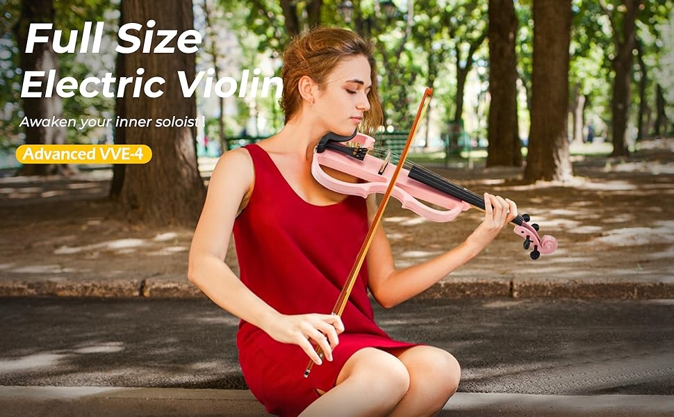 Повнорозмірна електроскрипка Vangoa 4/4 для початківців, рожева