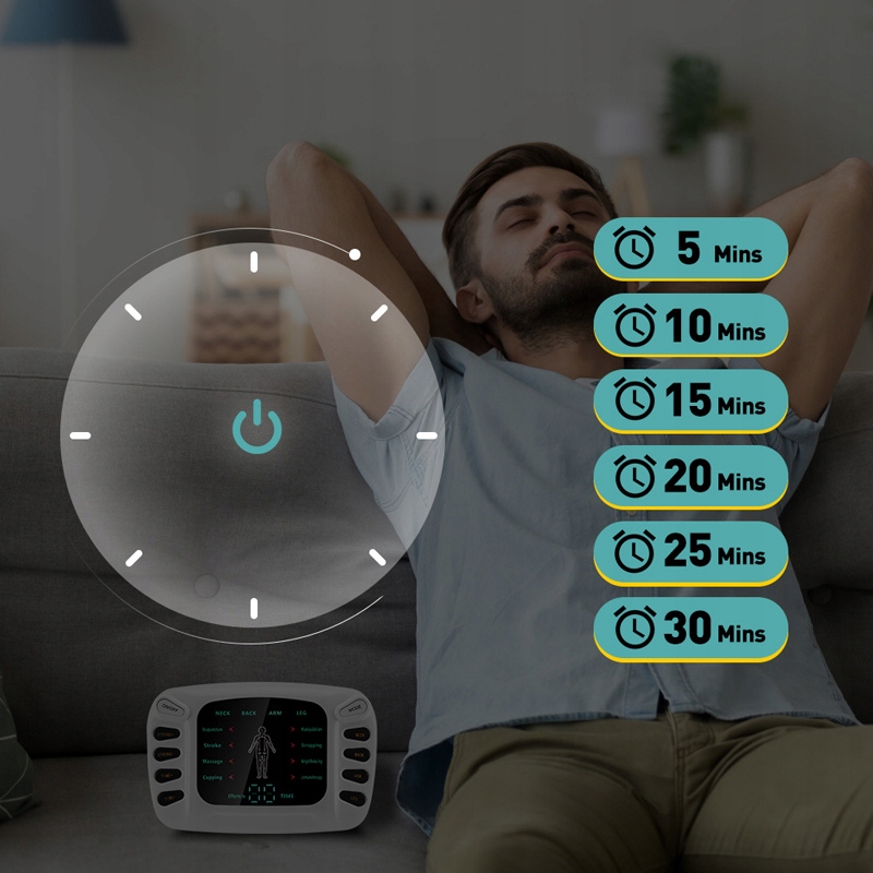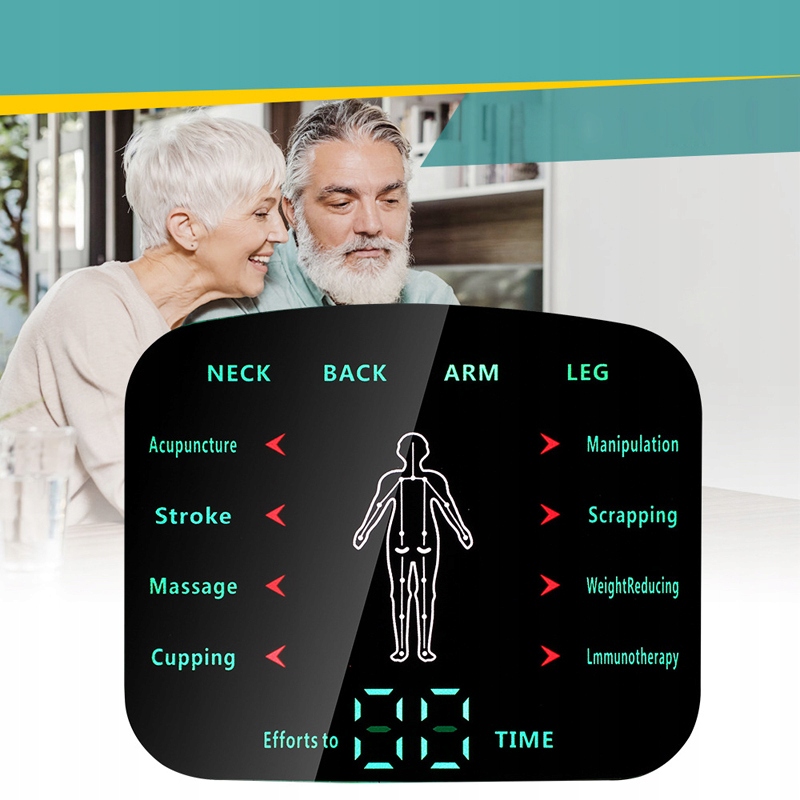 - Підходить для шиї, спини, рук, ніг 4 основних частини тіла, кожна частина має 8 режимів для на вибір;