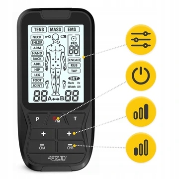 Що допомагає електростимуляція в масовому режимі? Це йде добре! комбінований 4fizio muscle Electrostimulator також був оснащений масажем, тобто класичним розслабляючим масажем . Пристрій має 3 функції : натискання на 14 програм та замішування та втирання - кожна після 13 програм . Масаж масажу допомагає розслабити напружені тканини та тісні м’язи . делікатні вібрації принесуть полегшення та заспокоєння втомлених ділянок тіла.