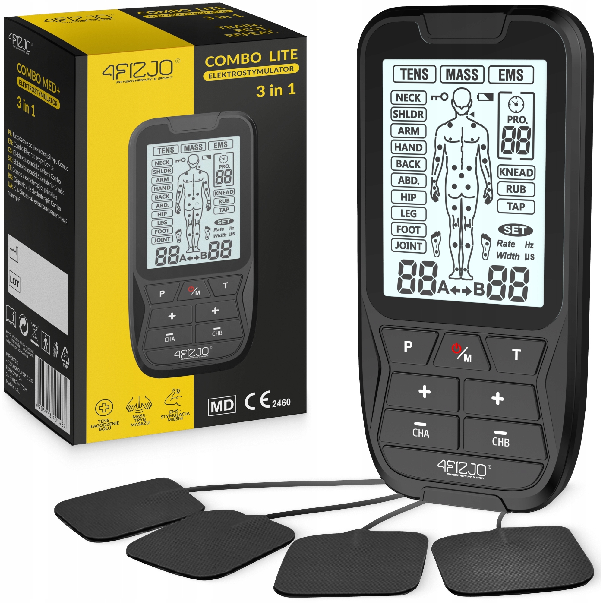 ✅ напр.3 в 1, тобто один пристрій для стимулювання м’язів - багато переваг! Комбінований електростимулятор для фізіотерапії 4fizio -це ефективна і проста -для використання камери. пропонує загалом 3 функції (десятки, EMS, масаж) та 59 різних програм . Кожна програма дозволяє керувати кількістю генерованих електричних імпульсів - їх інтенсивність, частота та діапазон . Цей бездротовий м’язовий електростимулятор може зафіксувати клавіатуру та панель управління. Це робить продукт безпечним для використання . Крім того, він працює від побудованого акумулятора, зарядженого USB .
