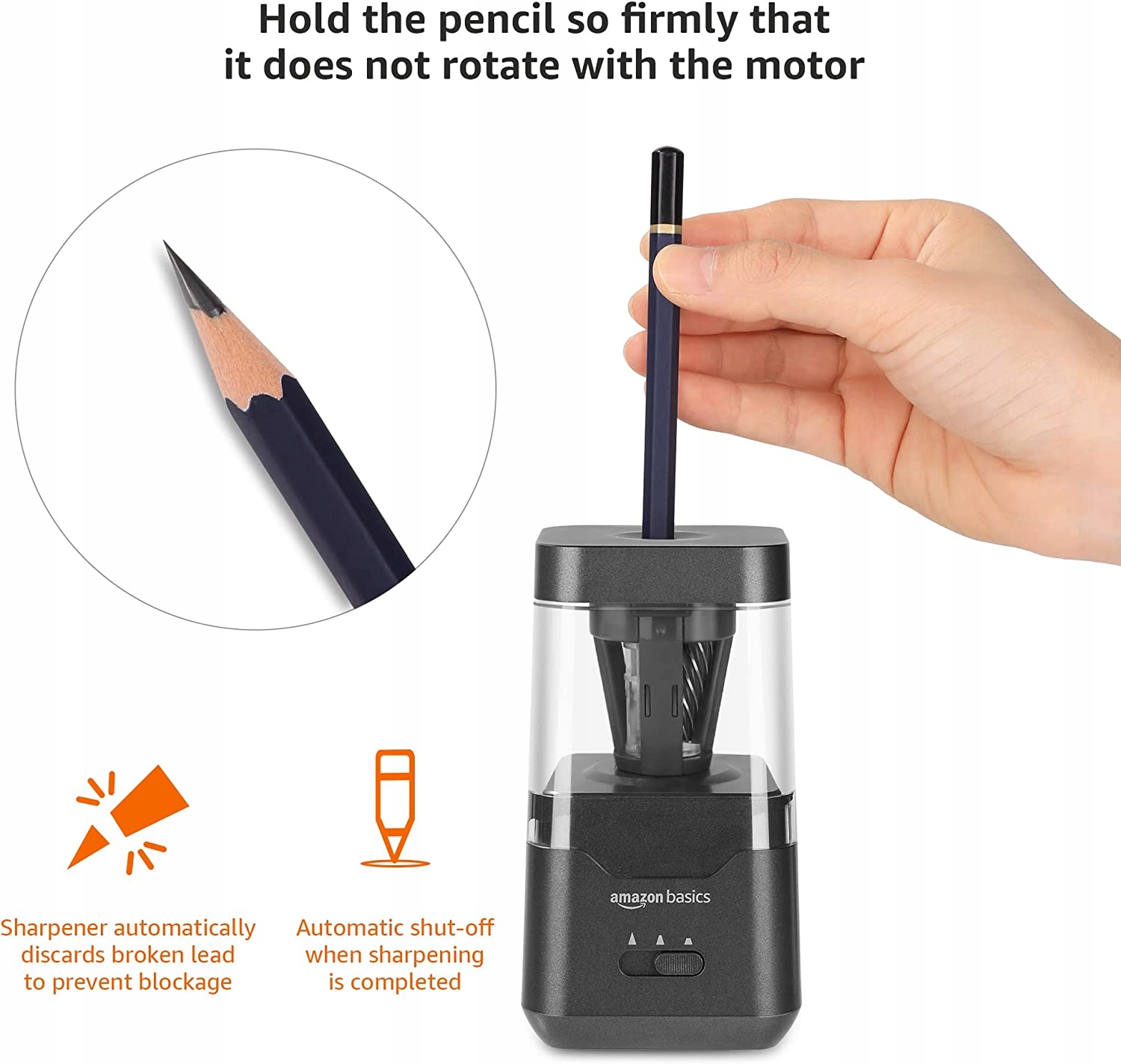 Вставте олівець і процес заточування почнеться автоматично. Він також автоматично вимикається, коли процес завершується або коли відкривається кришка