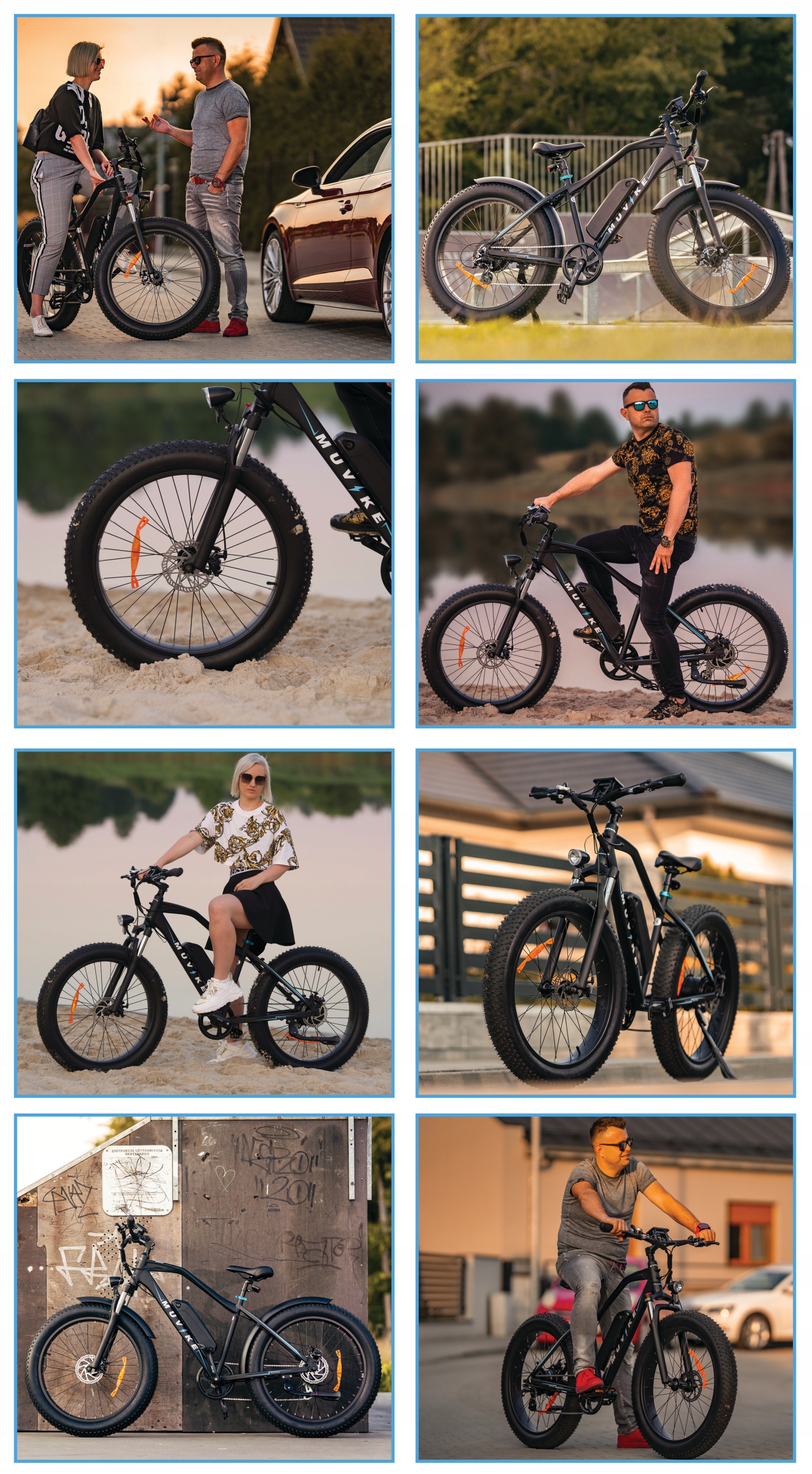 Ми можемо легко їздити на електричному гірському велосипеді Muvike Fat Bike по нерівній місцевості, пагорби, снігові пляжі чи ліси.