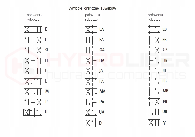 - Конфігурація: дві котушки 230 В змінного струму, 3-позиційний золотник типу G, стабілізований пружиною в положенні 0
