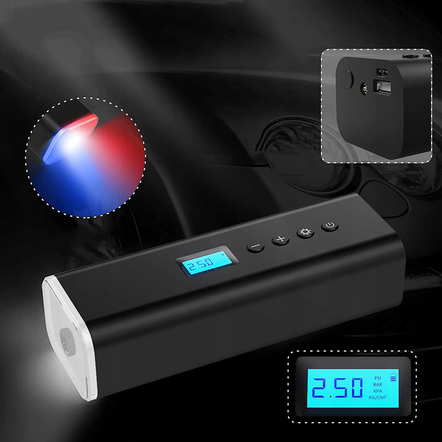 ELEKTRYCZNA CYFROWA POMPKA POWIETRZA Z EKRANEM LCD DO SAMOCHODU