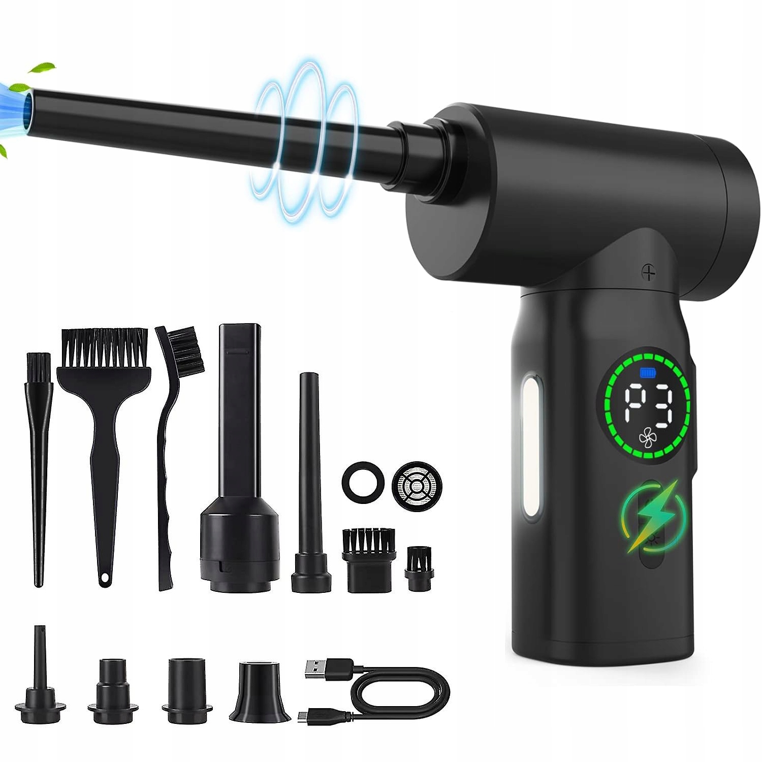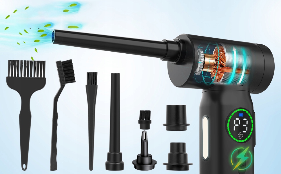 - Миттєво відчуйте чистоту завдяки нещодавно оновленому пилососу зі стисненим повітрям, який видаляє 99% пилу лише за 1 секунду. Завдяки потужній технології двигуна, електричний повітряний пиловловлювач, максимальна швидкість 110 000 об/хв очищає кожен куточок. Пилосос – чудовий миючий артефакт, який добре замінює балончик зі стисненим повітрям