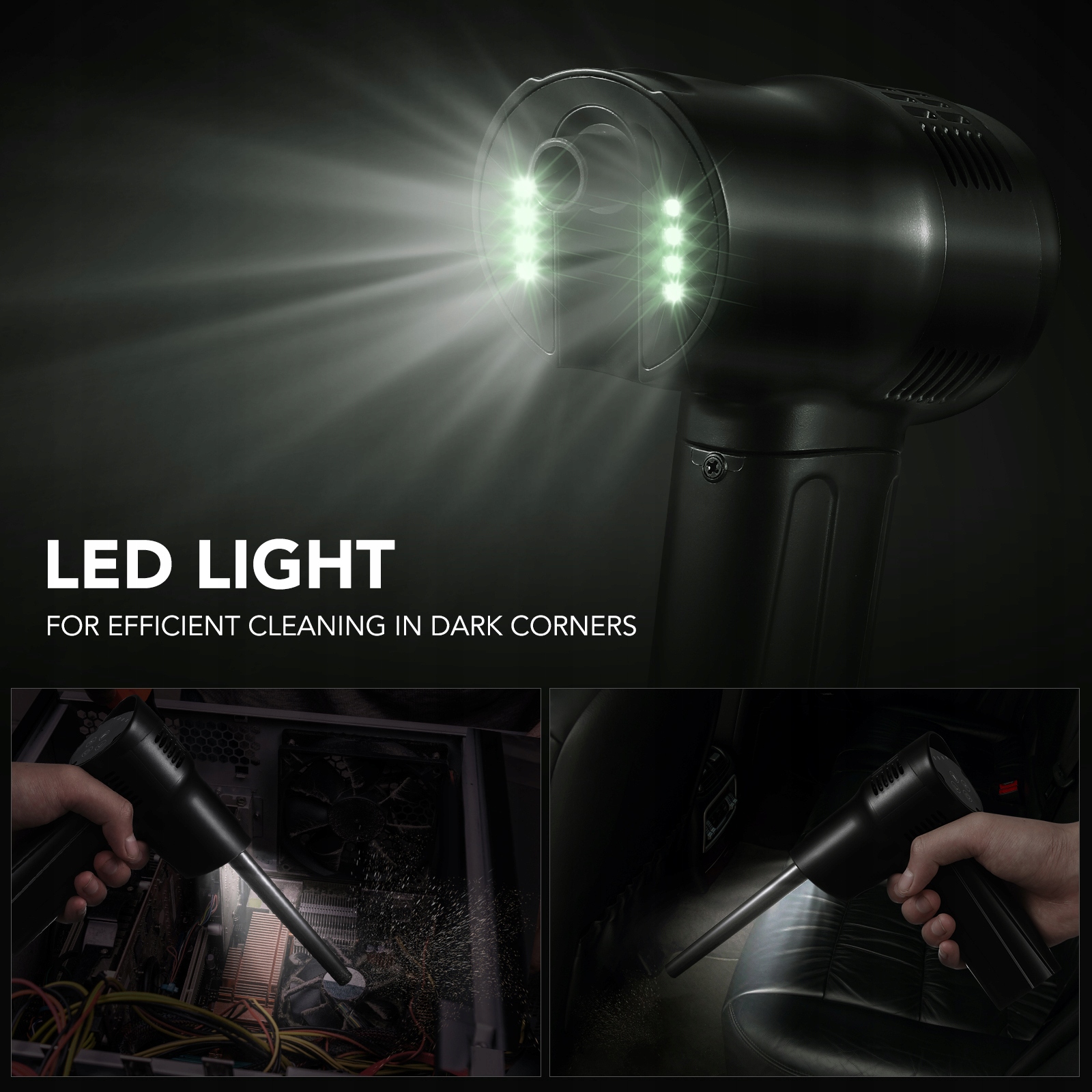 - Бездротовий пилосос забезпечує безперервний потік повітря під високим тиском для видалення пилу та може створити дуже потужний потік повітря. Зручно використовувати вдома, в офісі або в автомобілі. Сильний вітер полегшує прибирання. Проста і практична конструкція, яку зручно тримати, забезпечує комфорт під час прибирання.
