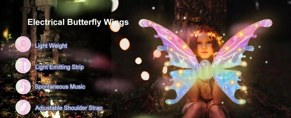 Elektryczne światło wróżki, ruchome skrzydła anioła motyla z muzyką