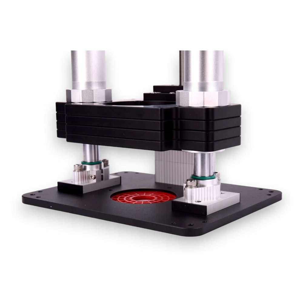 Стільниця виготовлена з міцного алюмінієвого сплаву товщиною 10 мм. Вставка містить напрямні штифти та 3 центрально розташовані вставки (червоні кільця діаметром: 10 мм, 31,7 мм та 51 мм), які забезпечують підтримку обробленого матеріалу навіть дуже близько до різця.