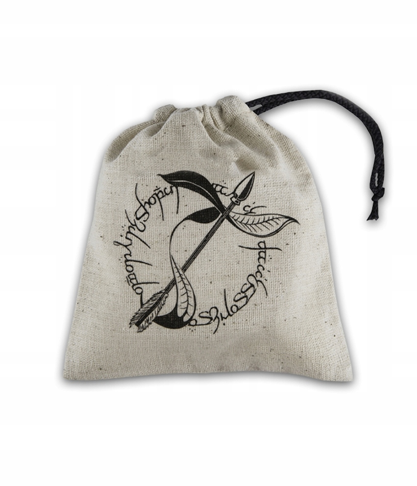 Це базовий ельфійський мішечок для кубиків, виготовлений із благородної бавовни, з елегантним чорним принтом. Підсумки серії Basic - це економічний вибір, призначений для початківців. Він виготовлений із менш щільної бавовни та має шнурок лише з одного боку.
