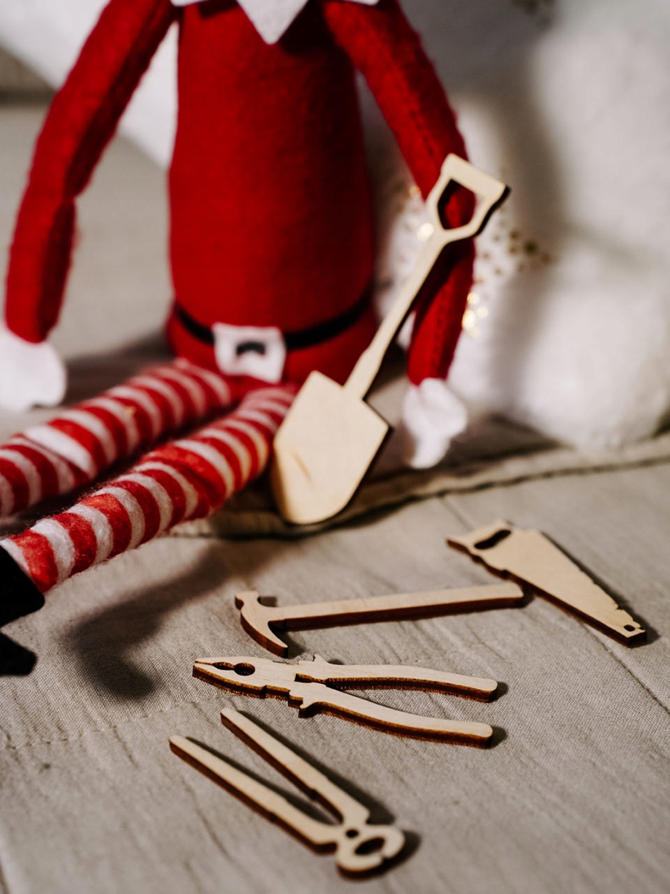 Щоб зробити цю розвагу легшою та різноманітнішою, наш Ельф-жартівник має багато цікавих аксесуарів і гаджетів в рукаві. Ми зробили їх з натуральної березової фанери. Усі вони упаковані в красиву новорічну коробку, яка чудово підійде як подарунок.