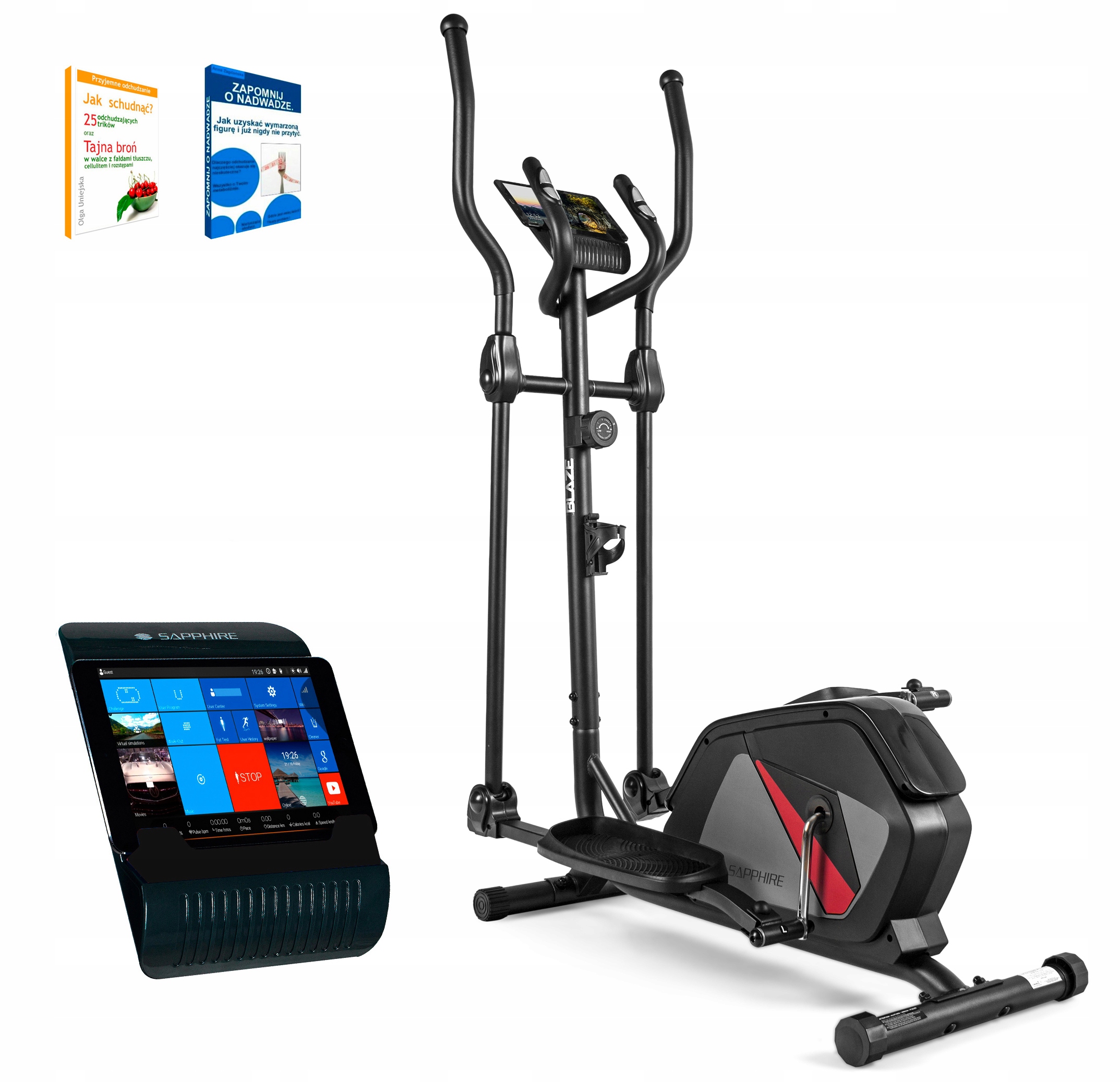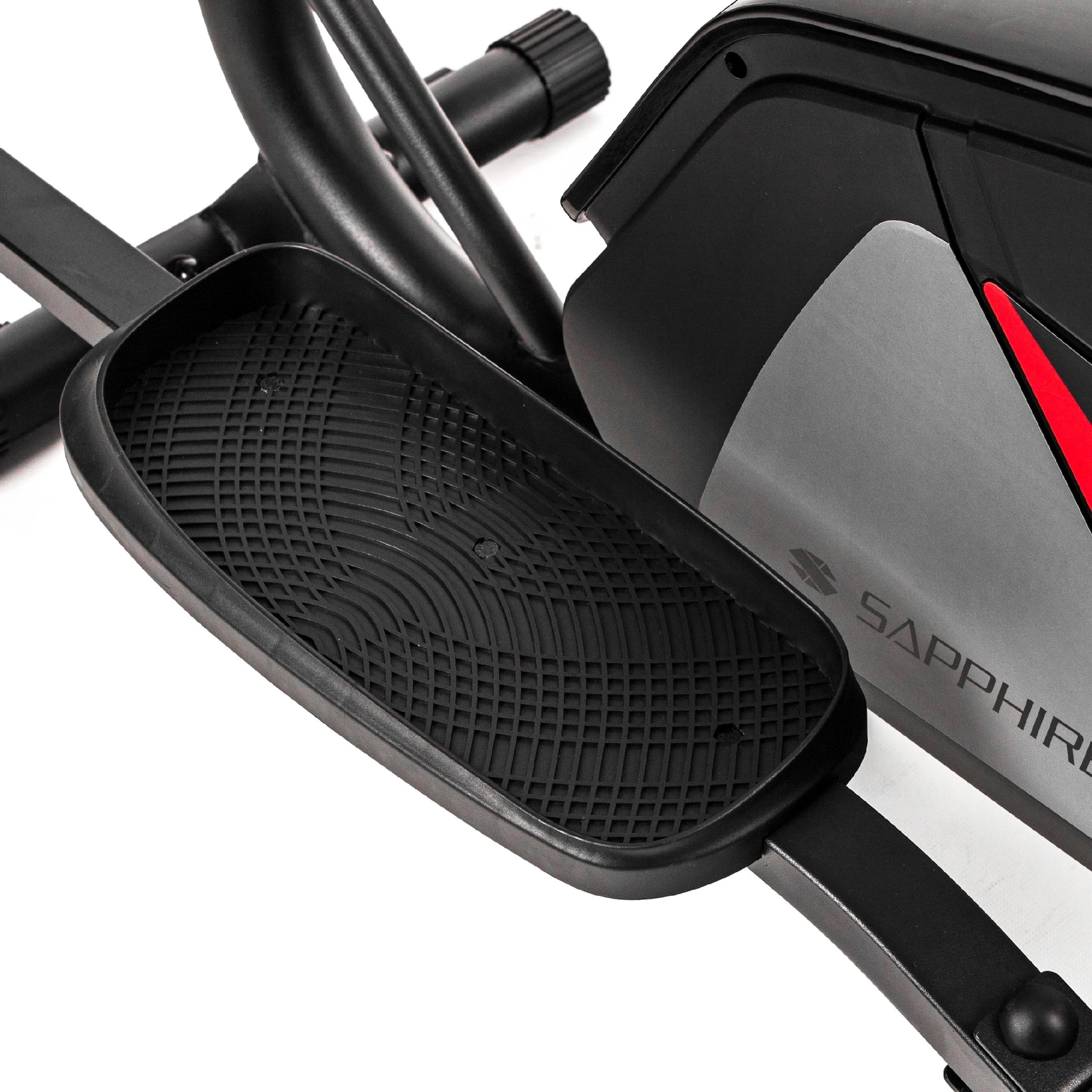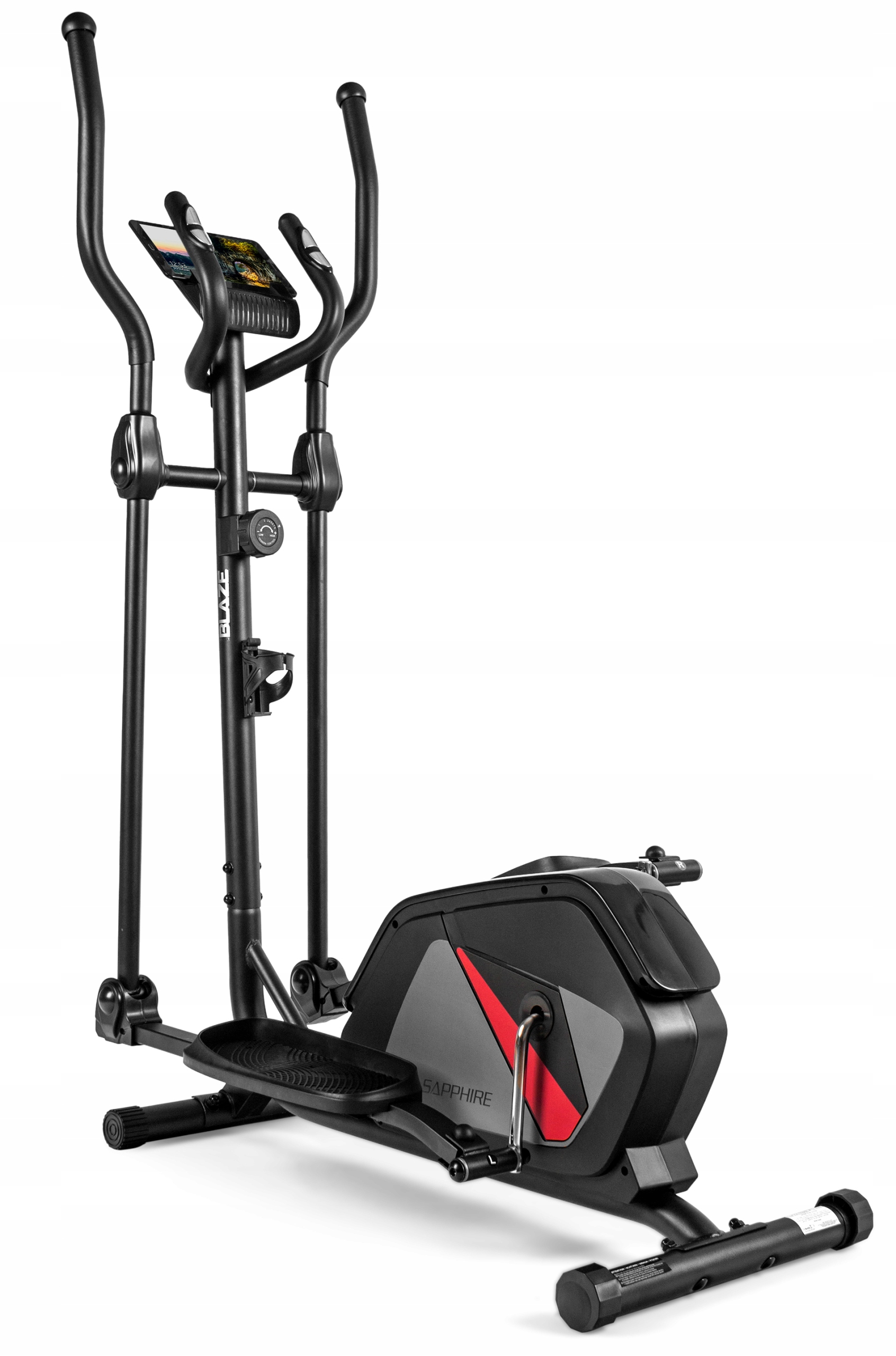 - Під час розробки еліптичного тренажера Sapphire Blaze, модель базувалася на найкращих моделях, доступних на ринку. Важливим елементом дизайну наших еліптичних велосипедів є посилені стабілізатори, які не тільки забезпечують безпеку тренажера, але й дозволяють вирівнювати пристрій на нерівних поверхнях.