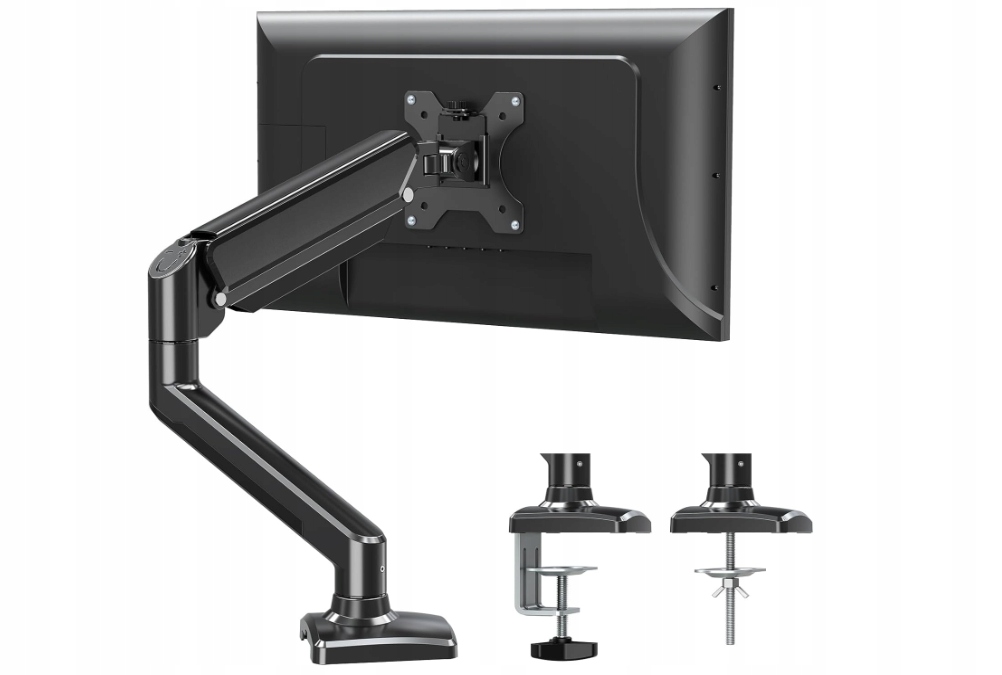 Цей кронштейн з газовою пружиною підходить для більшості плоских і вигнутих моніторів розміром від 13 до 32 дюймів зі стандартними VESA 75x75 мм або 100x100 мм вагою до 9 кг.