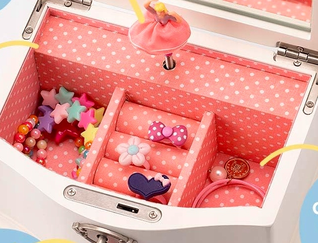 - Дерев’яна коробка ювелірних виробів із вбудованою музичною коробкою. Невеликі речі - достатньо для ювелірних виробів, сувенірів або інших дрібних предметів.