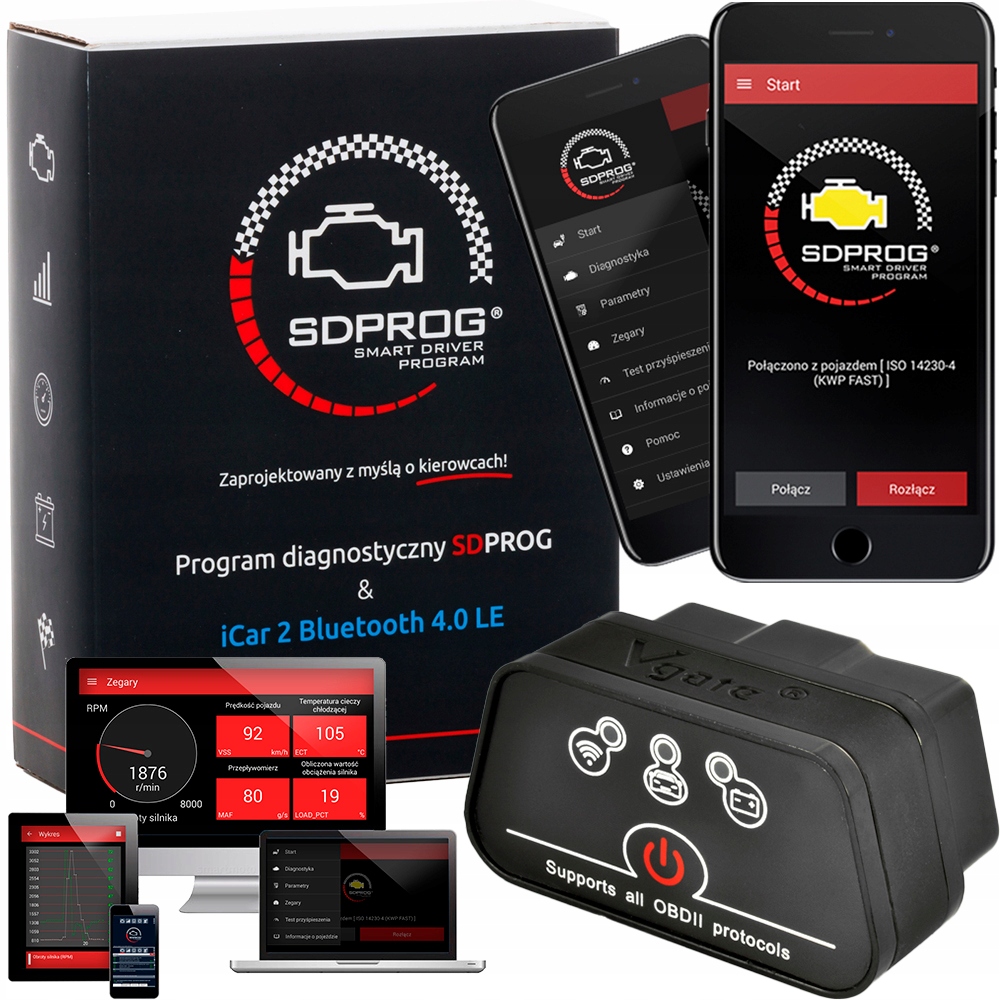 SDPROG - це сучасна, повністю польська програма діагностики автомобіля, яка надає всю найважливішу інформацію щодо експлуатації автомобіля . Інструмент інтуїтивно зрозумілий і простий у використанні. Після підключення пристрою з встановленим програмним забезпеченням до бортового комп'ютера ми отримуємо всю необхідну інформацію. SDPROG - це рішення в першу чергу для людей, які хочуть мати повний контроль над своїм автомобілем. SDPROG можуть успішно використовувати як приватні особи, так і компанії, наприклад, автомобільні майстерні.