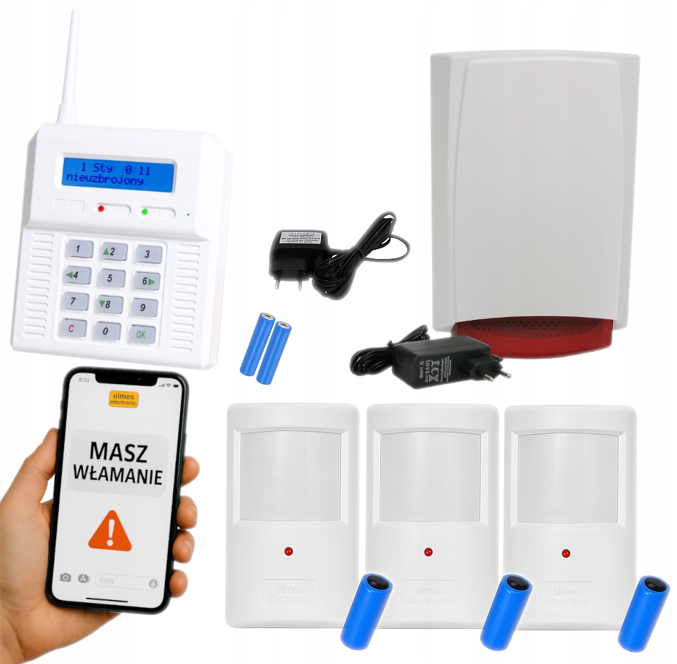 Система сигналізації ELMES призначена для використання в малих та середніх об'єктах (наприклад, кіоски, бутики, майстерні, літні будинки, офіси, будинки, магазини, магазини тощо). Зовнішня панель управління та сирена потребують постійного джерела живлення від джерела живлення, інші пристрої бездротові.