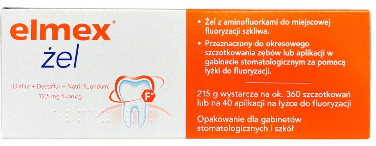 Elmex - це ліки у вигляді гелю з амінофторі для інтенсивної профілактики гумусу, а також для лікування гіперчутливості шиї зубів та ремінералізації ранньої карієсу. Гель можна використовувати у дітей старше 6 років та дорослих.