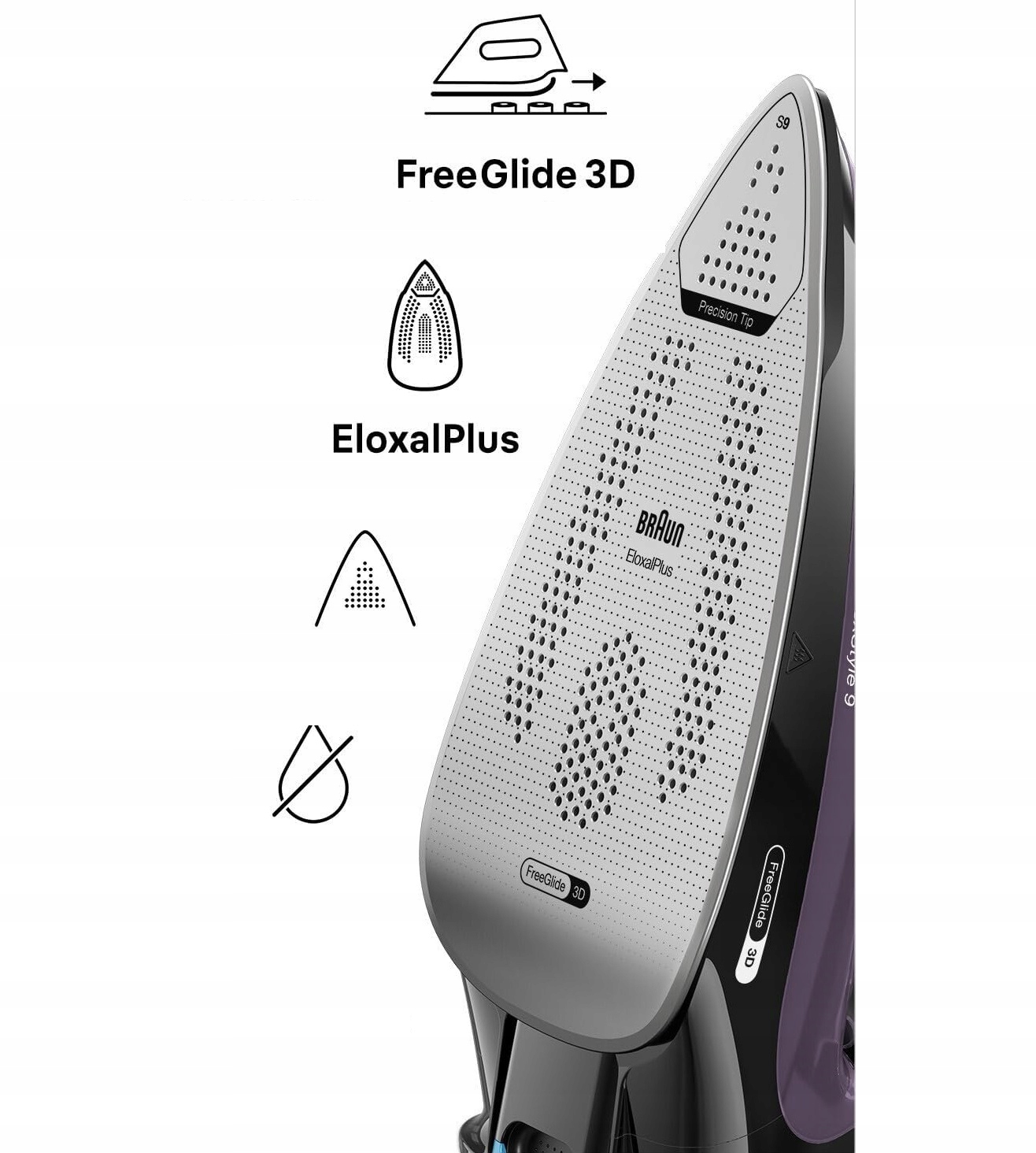 High quality steam iron with Freeglide 3D, 3100W sole, steam sheet 260 g/min ,, h1> Eloxal foot Eloxalplus Freeglide 3D h1>
