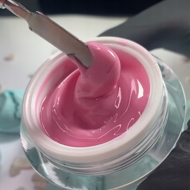 ✅ Mousse Builder Love Biteмає консистенцію піни, середню швидкість розрівнювання, будь-який час моделювання. Гелі доступні у відтінках ніжного рожевого та нюдового.