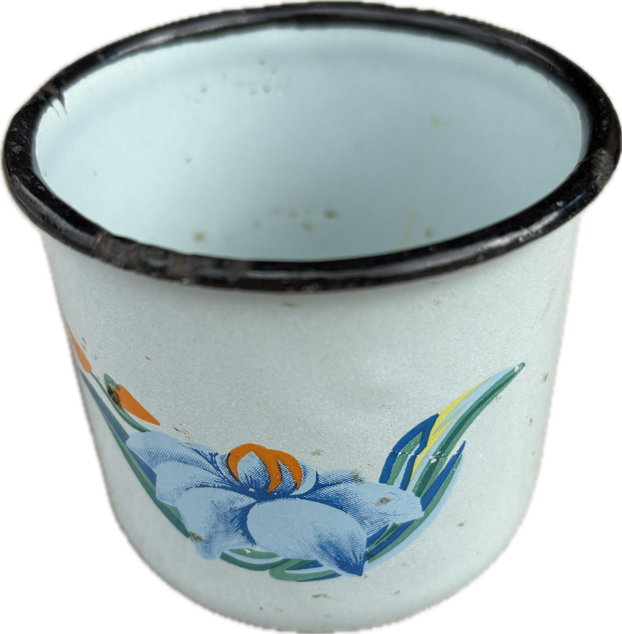 емальований кухоль часів ПНР. Підписано. Сліди використання. Розміри; висота 7 х 10 х 8 см.