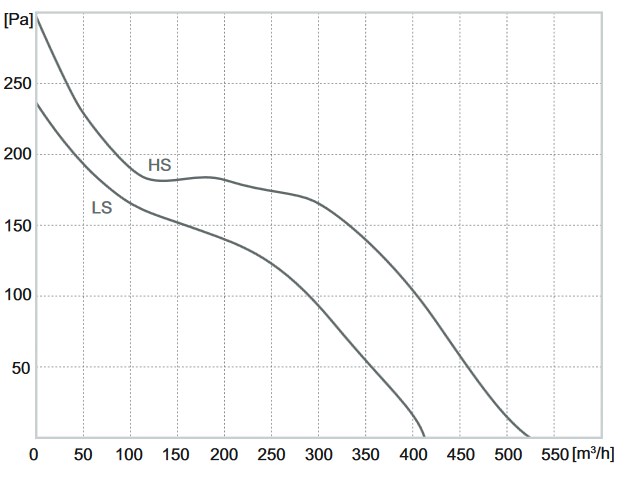 Вентилятор оснащений двошвидкісним двигуном, що живиться від однофазної мережі 230 В, 50 Гц, адаптований для регулювання напруги.