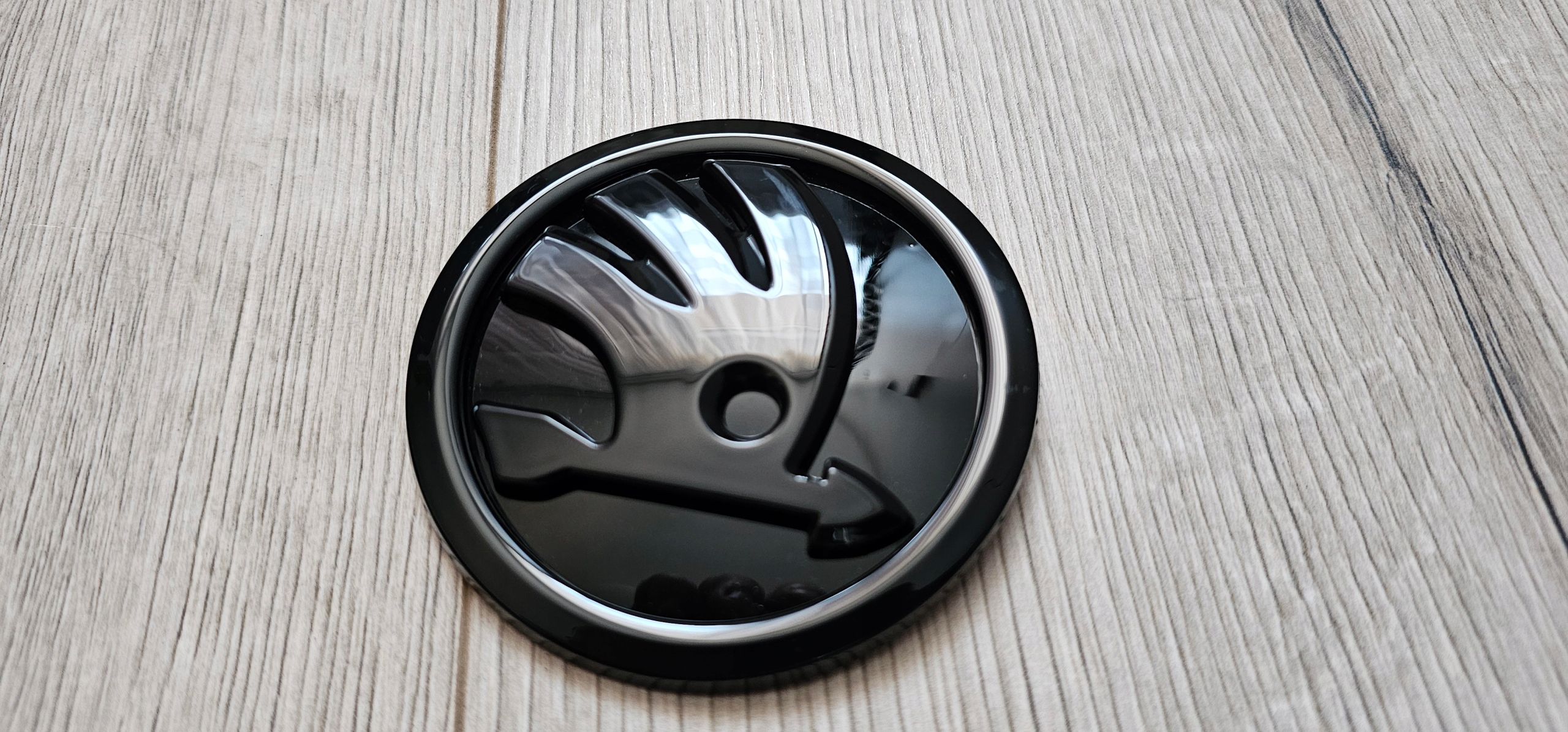 Емблема логотипу Skoda 90 мм чорний глянцевий дефект із пошкодженням