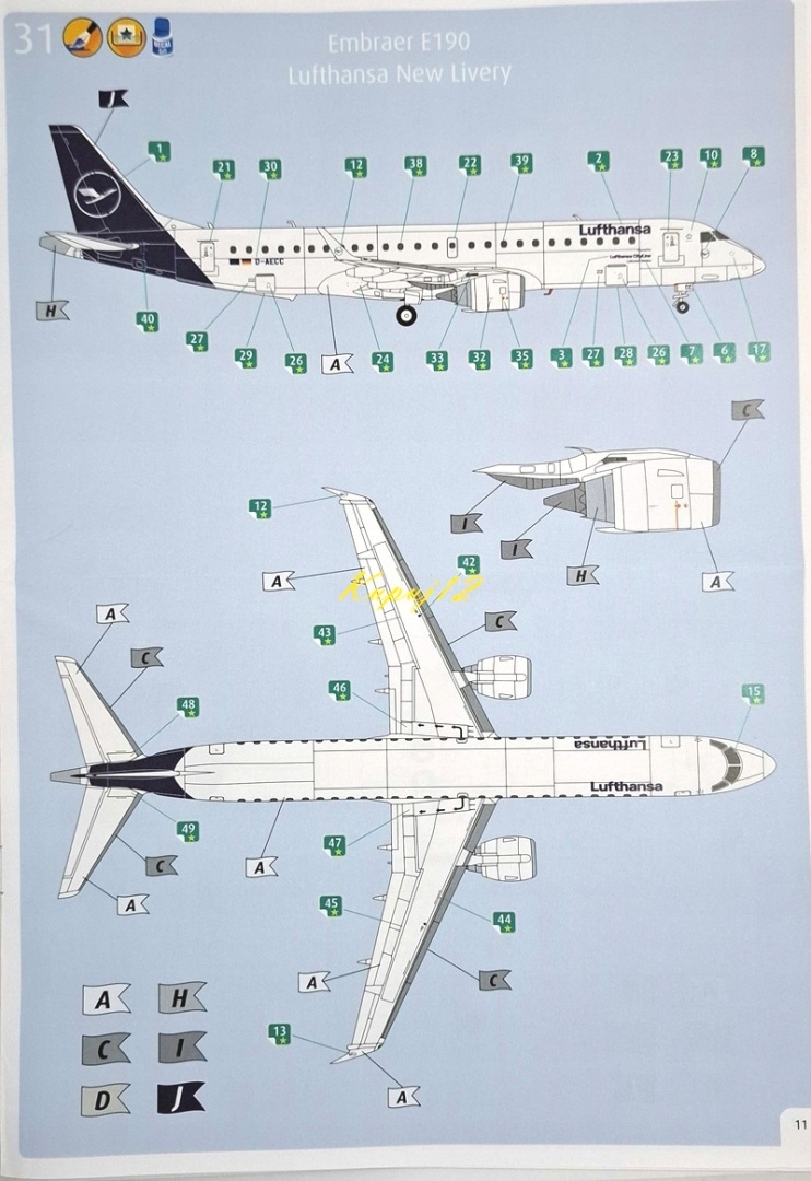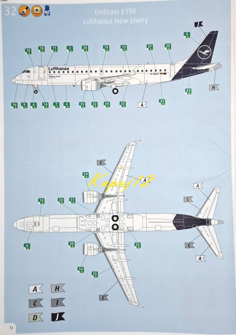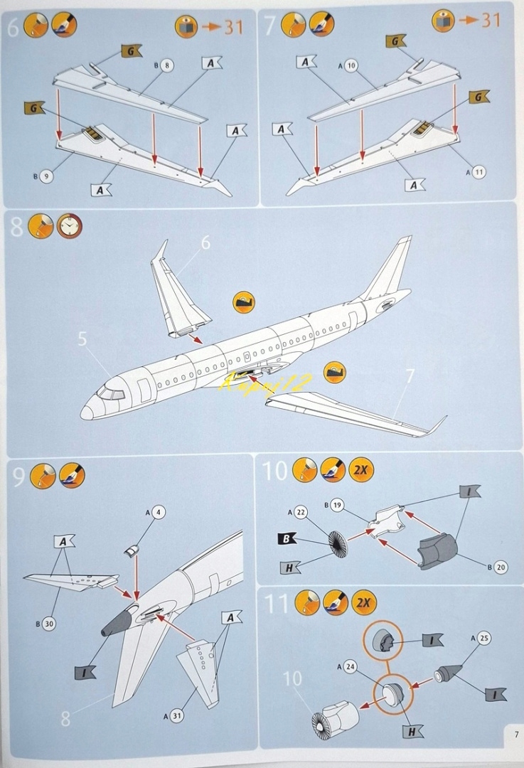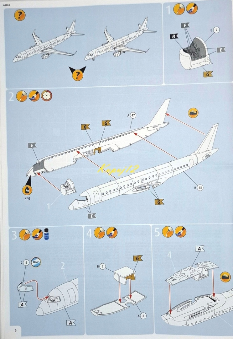 Пластикова модель літака Embraer 190: фарби, лак. Фотографії на коробці, упаковка може значно відрізнятися від фактичного маскування літака! Кадри, що містять пластикові деталі. Li>