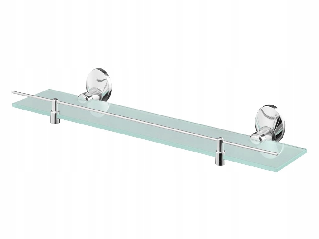 Полиця з колекції EMOTION. Кріпиться до стіни шурупами або клеєм БІСК ФЕСТ. Полиця виготовлена із загартованого скла, а ручка із замаку, покрита хромом.0