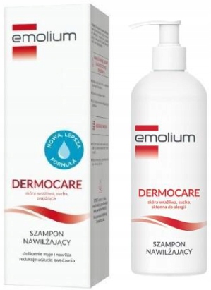 Шампунь Emolium ніжно очищає волосся та суху шкіру голови, відновлюючи їх належне зволоження та заспокоюючи подразнення. Зменшує відчуття свербіння, усуваючи надмірне лущення епідермісу. Зволожуючий шампунь Emolium робить волосся еластичним і приємним на дотик після миття.