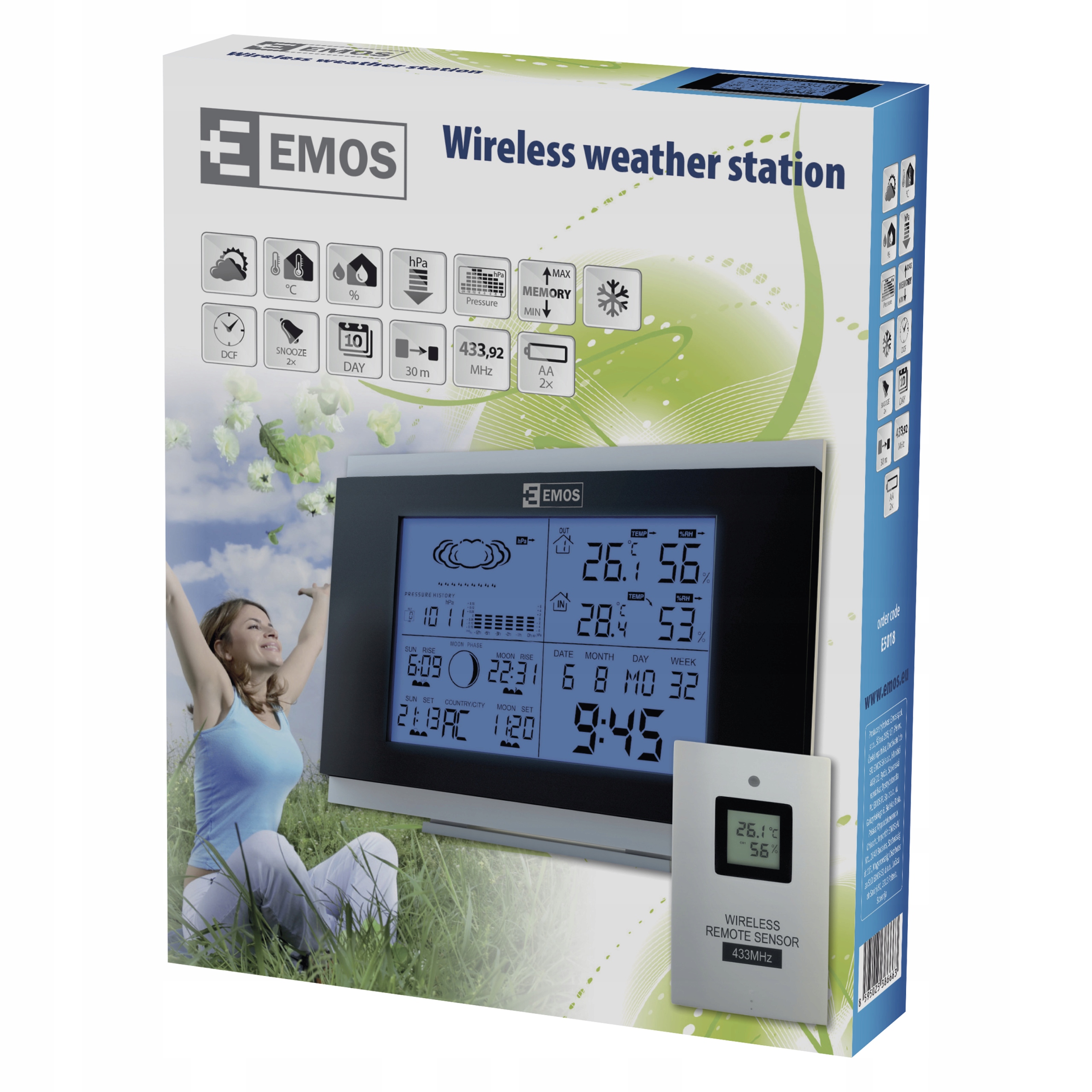 Знаючи, скільки градусів зараз усередині та скільки надворі, буде корисно знати, чи буде сонячно або дощ через кілька годин. Не дивуйтеся погоді та отримайте у своєму розпорядженні всю необхідну інформацію завдяки метеостанції EMOS. Завдяки дисплею з підсвічуванням ви зможете побачити, скільки градусів, а також вологість і фазу місяця. Метеостанція також порадує вас рядом практичних додаткових функцій, таких як годинник, календар або будильник.