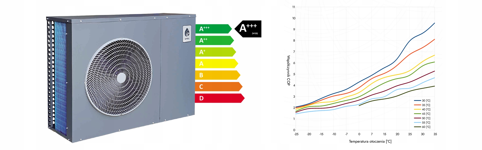 - Клас енергії (35 ° C/55 ° C): A +++/A ++