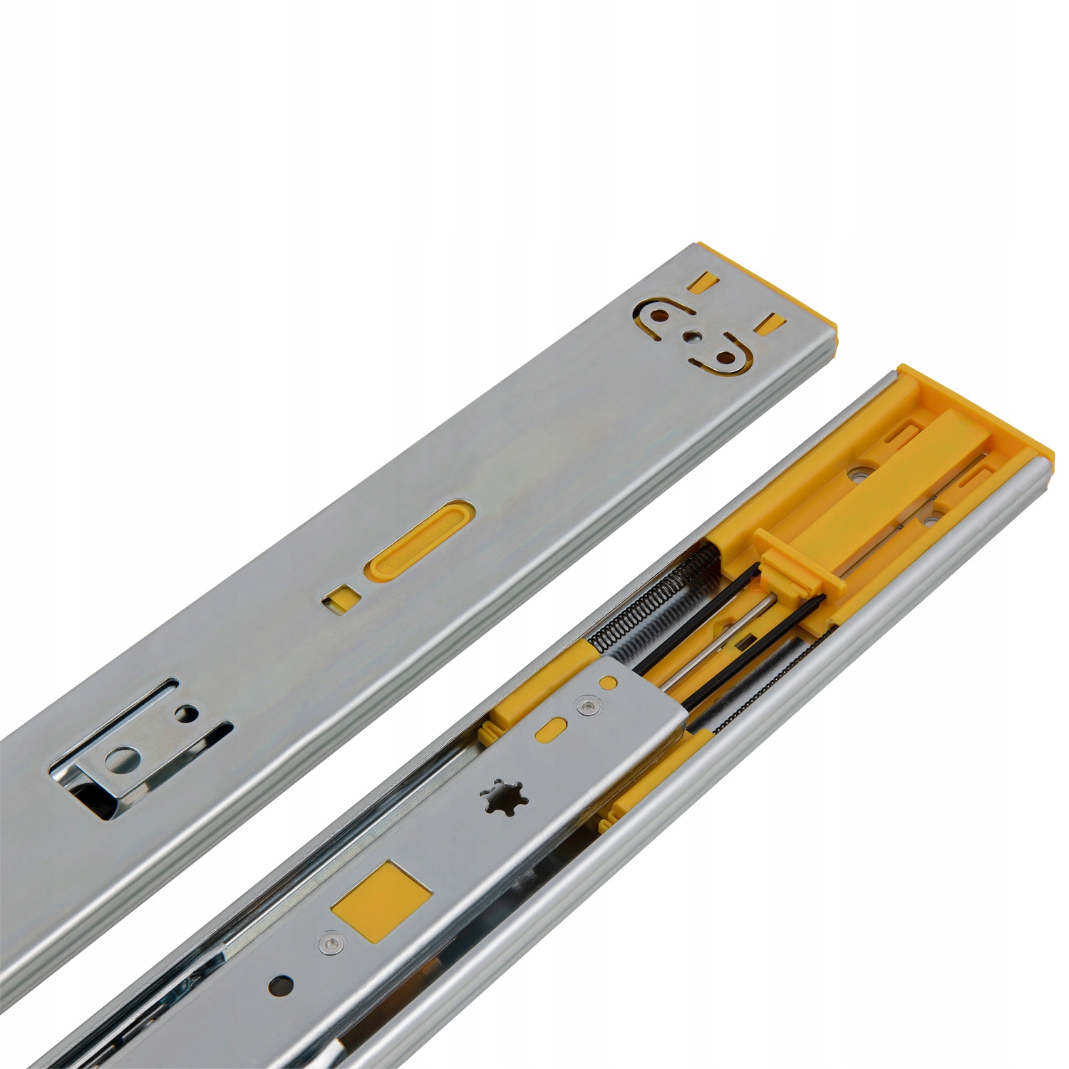 Висококласна напрямна з тихим закриттям, H-45mm висотою, ідеально підходить для всіх типів висувних полиць і ящиків . Направляючі мають вбудовану функцію PUSH TO OPEN, яка при легкому натисканні на передню частину активує механізм висування ящика. Система самозакривання з гальмом гарантує тихе та безшумне закривання. Направляюча має можливість демонтажу частин направляючої та механізм, що запобігає випаданню ящика. Продукт іспанського виробника EMUCA.