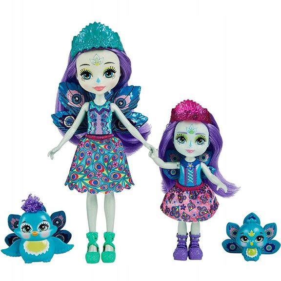 Це сестри Enchantimals — дві чарівні дівчини, пов’язані одна з одною та їхніми улюбленими тваринами унікальною дружбою. Чарівні та модні сестри Enchantimals - старша Паттер і молодша П'єра - обожнюють робити все разом, наприклад купувати однакові вбрання. До кожного з них також є фігурка павича. Ляльок можна розташувати так, щоб вони трималися за руки, підкреслюючи їх унікальний сестринський зв’язок. Набір із 2 ляльками та 2 фігурками тварин подарує дітям багато розваг у стилі Enchantimals.