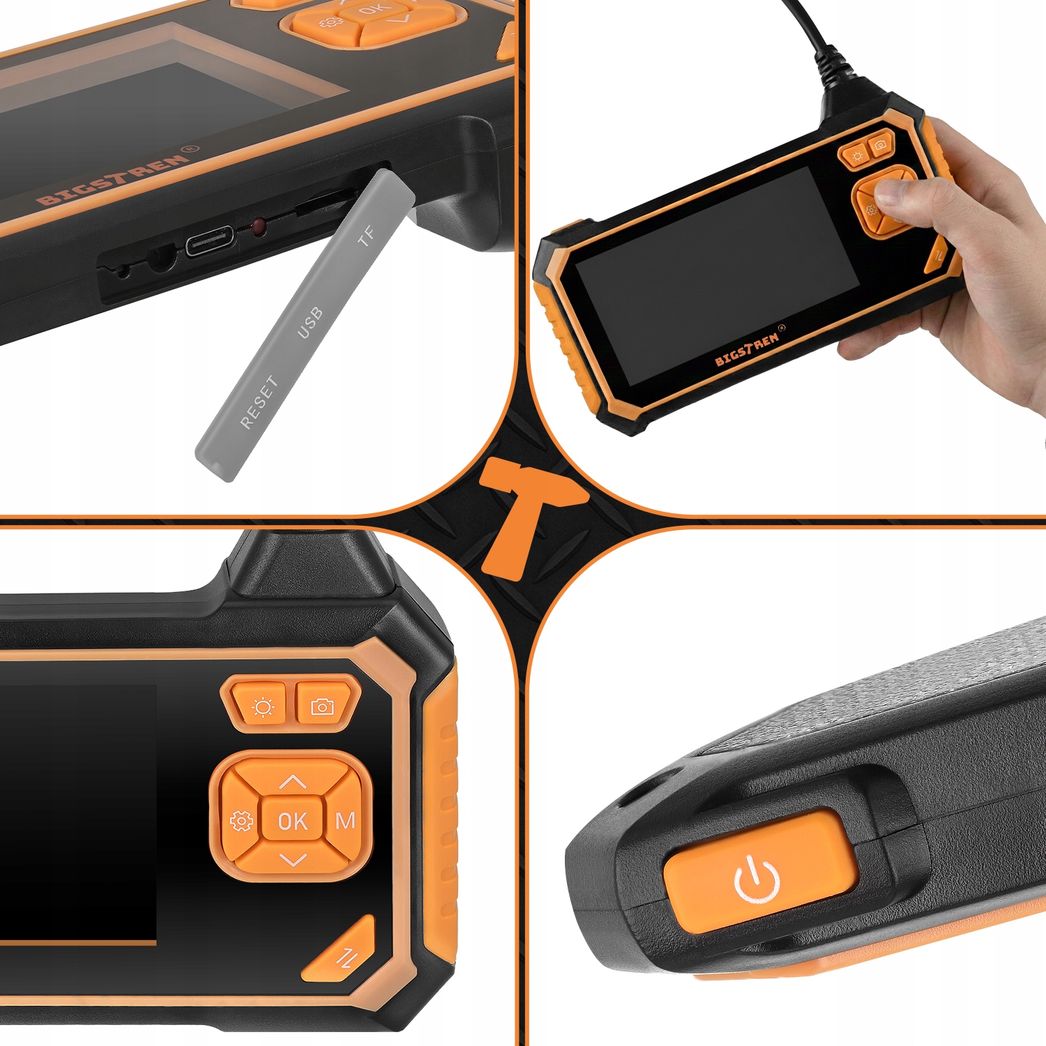 Ендоскоп BIGSTREN - це сучасна оглядова камера, яка дозволяє швидко перевірити важкодоступні місця без розбирання елементів. Великий 4,3" HD LCD екран показує зображення в якості Full HD без необхідності встановлення програми і до 5 метрів гнучкого кабелю дозволяє зазирнути глибоко в труби, канали, закутки та щілини інсталяцій або простору за меблями. Водонепроникність IP67, 6 світлодіодів з регульованою яскравістю і набір з 4 наконечників дозволяють камері справлятися з будь-якими умовами. Це практичний інструмент для ентузіастів DIY, домовласників, механіків і сантехніків.