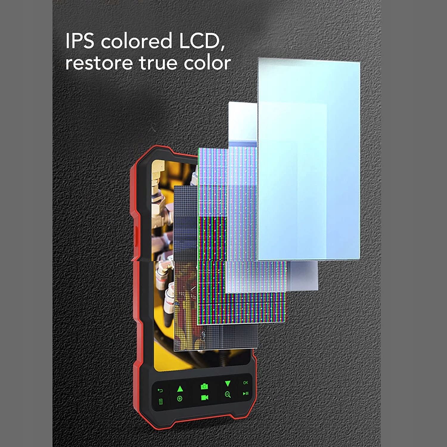 ЧУДОВОЇ ПРОДУКТИВНОСТІ Ендоскоп має передній датчик і датчик, встановлений збоку, які можна використовувати під різними кутами огляду у вузьких просторах, щоб заощадити час під час огляду. ВОДОСТІЙКІСТЬ за стандартом IP67. Об’єктив розроблений за допомогою нової майстерності, має міцні герметизуючі властивості, маслонепроникний і водонепроникний, і може працювати під водою протягом тривалого часу. РК-ДИСПЛЕЙ В автомобільному ендоскопі використовується кольоровий РК-дисплей IPS, який може відновити справжні кольори та покращити вміст. Ця цифрова діафрагма підтримує зовнішню пам’ять, яка може підтримувати карти пам’яті до 32 Гб для задоволення великих потреб у сховищі. LED RING LIGHT Світлодіодні ліхтарі можуть регулювати яскравість і забезпечувати чудову видимість найтемнішої зони керування попередньої камери. Бічна камера має власне світлодіодне підсвічування, яке можна використовувати для бічного освітлення. ПРОСТО У ВИКОРИСТАННІ Світлодіодний ендоскоп не має складного способу підключення. Його можна використовувати після запуску, заощаджуючи час на обслуговування та тривогу. Ендоскоп використовує USB-зарядку.