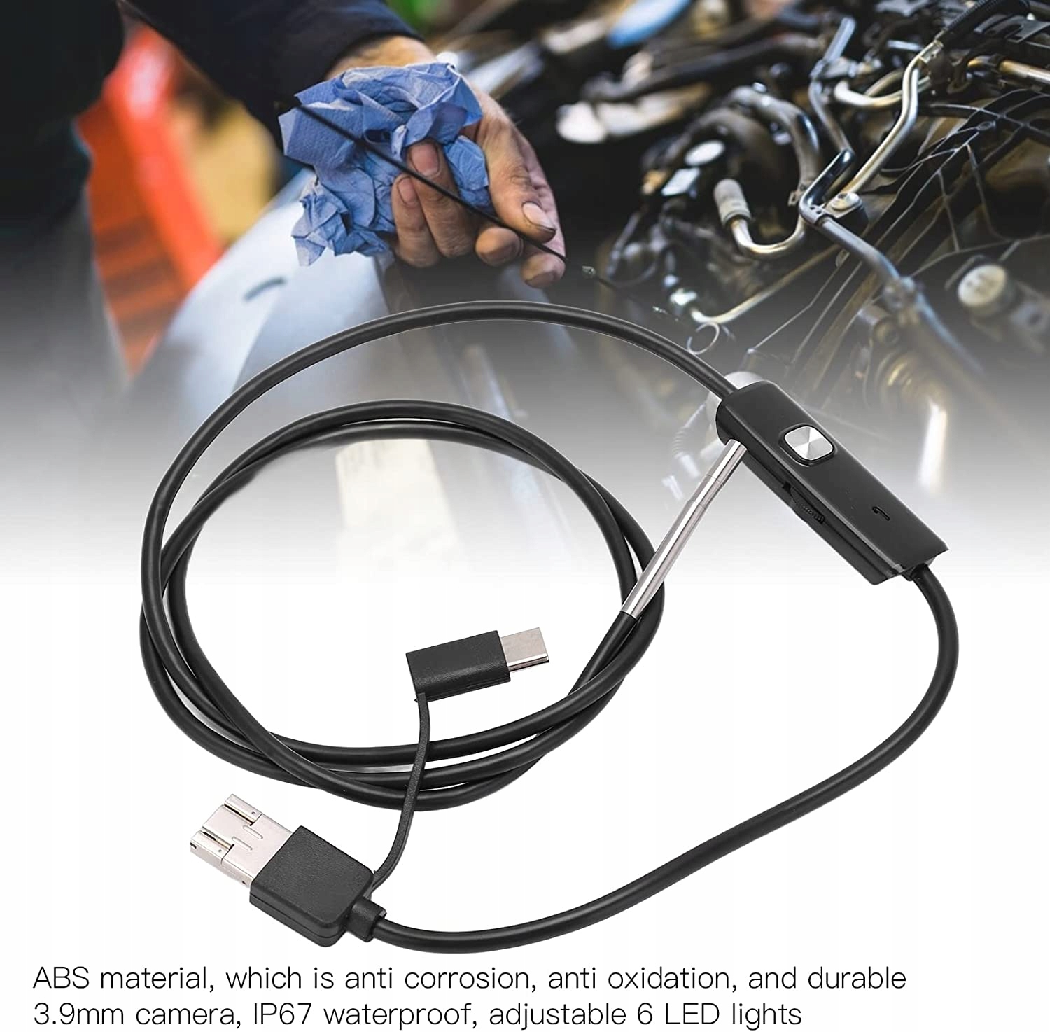 Виріб виготовлено з високоякісного матеріалу ABS, який є стійким до корозії, окислення та міцним. Мобільний телефон можна легко ремонтувати та керувати однією рукою, що дуже зручно та може задовольнити різні потреби. Водонепроникний об’єктив діаметром 39 мм IP67. 6 світлодіодних ламп можна регулювати за допомогою кнопки диммера на блоку керування відповідно до ваших вимог. Цей ендоскоп може зменшити експозицію зображення та колірний ефект у темряві чи при слабкому освітленні без спотворення. Цей продукт широко використовується в обслуговуванні автомобільних двигунів, електрики, дренажу, труб, машин, інспекції та візуального огляду важкодоступних місць.