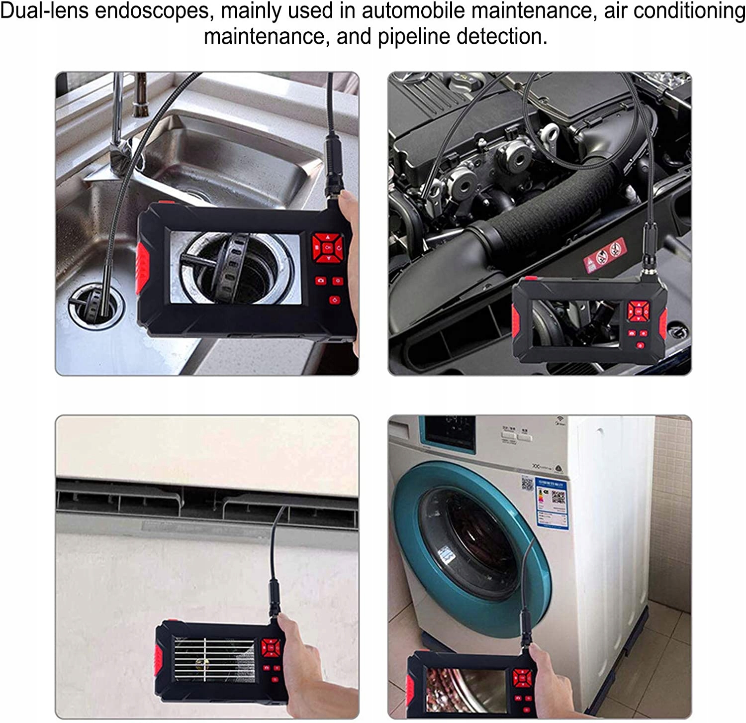 Завдяки регульованому джерелу світла 8 1 додайте вбудоване освітлення, щоб розширити поле зору в темному середовищі. Промисловий ендоскоп, який в основному використовується для обслуговування кондиціонерів і виявлення трубопроводів. Зонд оснащений передньою лінзою та бічної лінзою, які забезпечують чітке зображення під різними кутами. Гуманізований дизайн, екран із 4 рівнями регулювання яскравості може краще захистити ваші очі, простий у використанні. Бокова лінза може створювати чіткіші зображення, ніж аксесуари для бокових дзеркал, на основі відбиття світла.