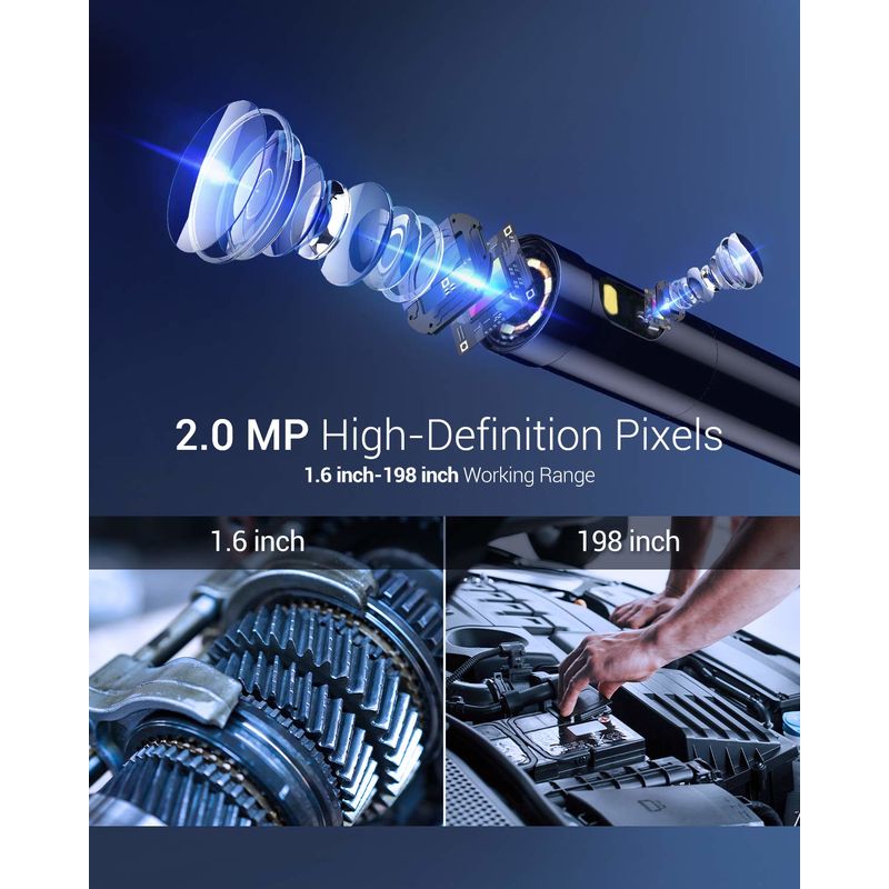 5-метровий напівжорсткий кабель знімається і забезпечує хорошу продуктивність поєднання гнучкості та жорсткості, що полегшує навігацію. струнка, високоякісна камера діаметром 7,9 мм і класом водонепроникності IP67 дозволяє отримати доступ до важкодоступних місць. Ергономічний дизайн ручки та невелика вага ендоскопа полегшують його використання однією рукою.